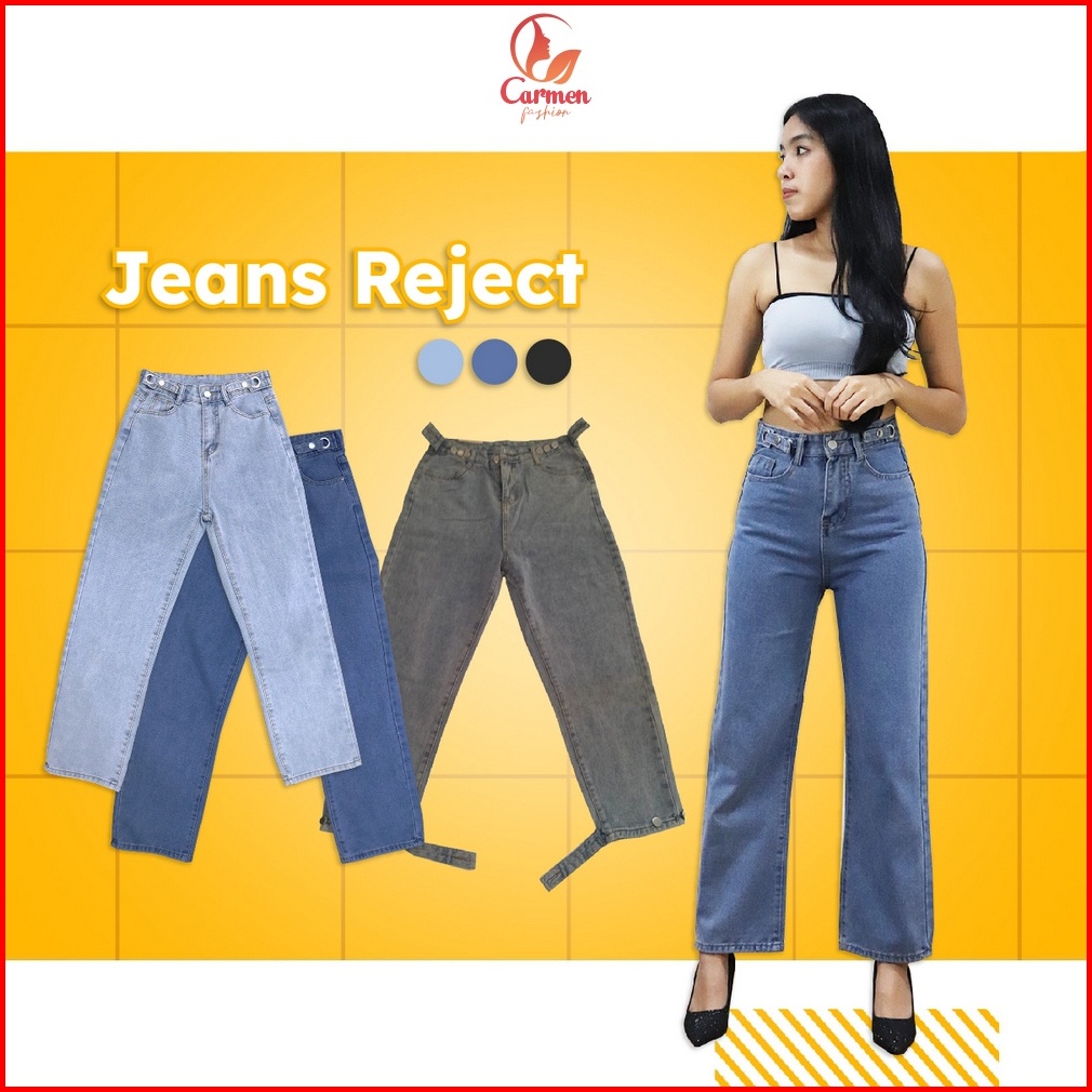 Celana Highwaist Boyfriend Jeans Panjang Wanita Barang Rijek Jeans Wanita Stright Loose Jeans Women Cf