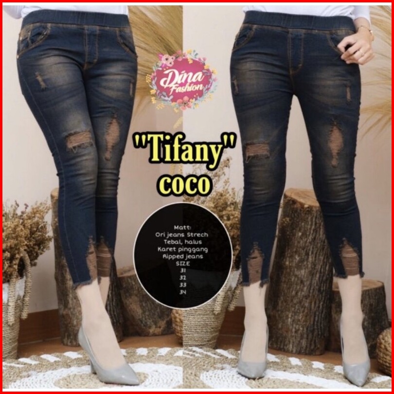 27-38 Tifany Jeans 7 9 Sobek Tidak Tembus Jegging Jeans Sobek Tidak Tembus