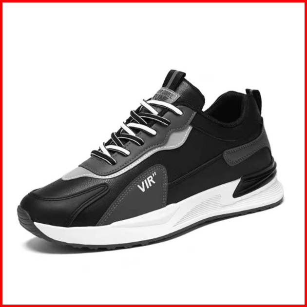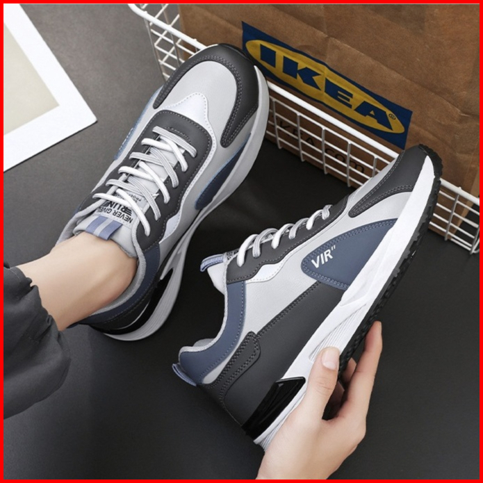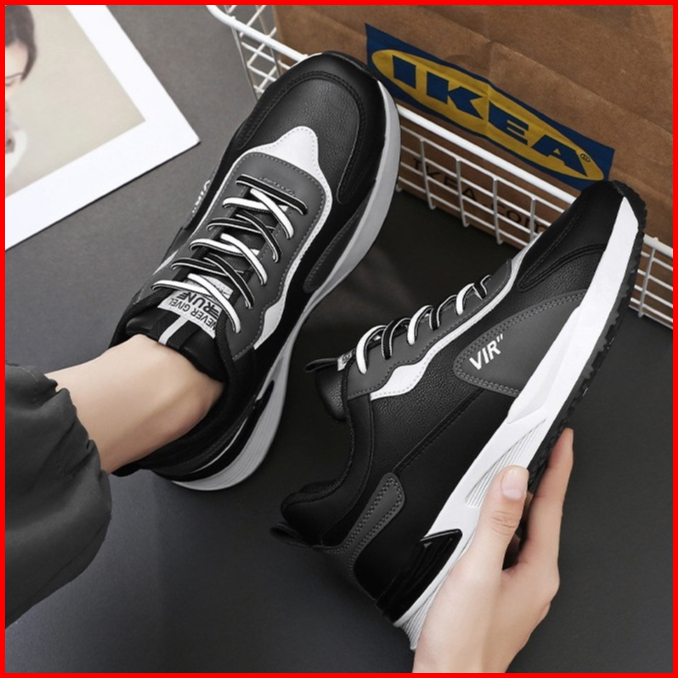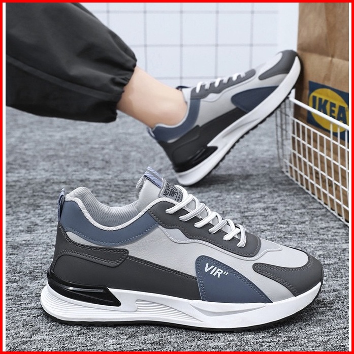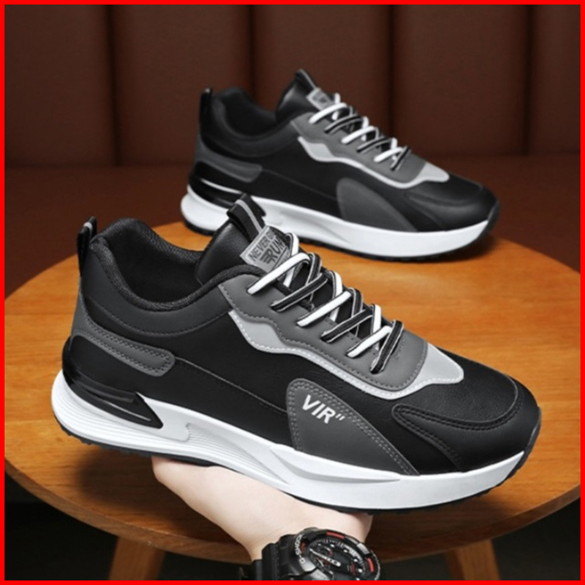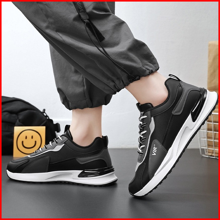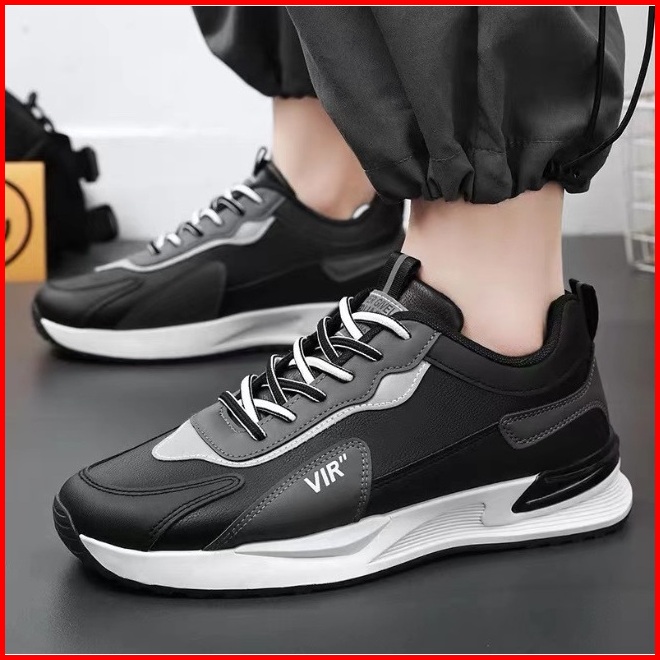 Tbig Vir331 Sepatu Sneakers Pria Bahan Kulit Sintetis Warna Hitam Abu Shoes Kerja Kuliah Santai Ls01