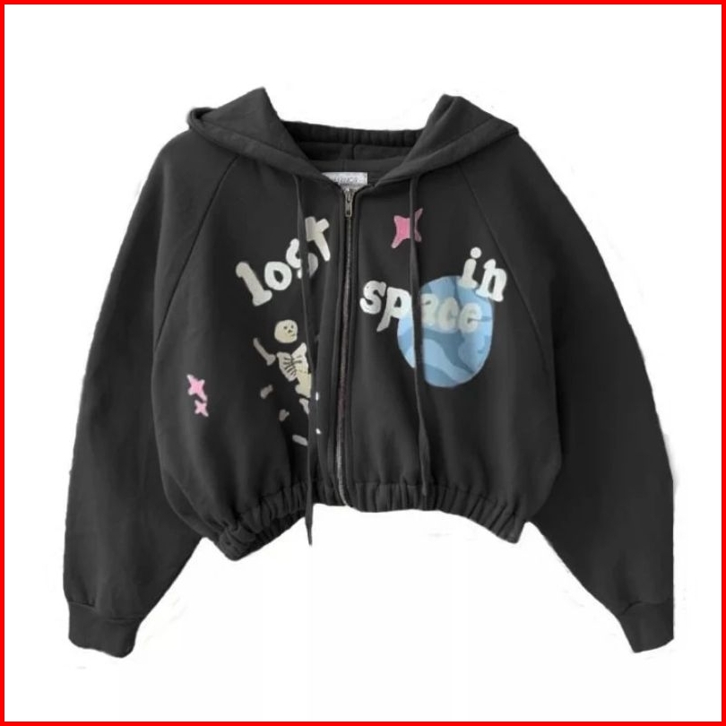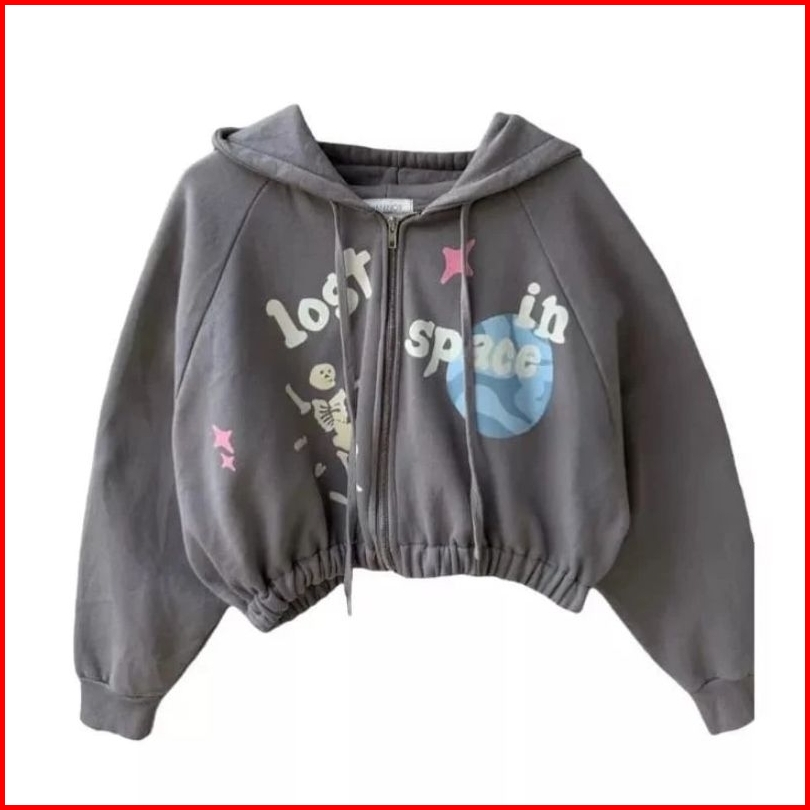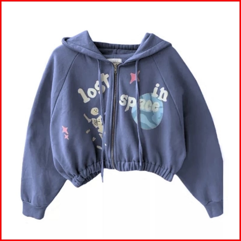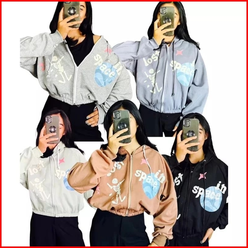 Space In Jaket Crope Hoddie - Jaket Crope Zipper Wanita