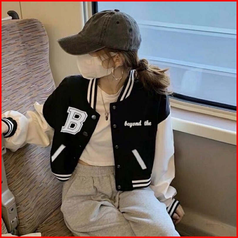 Beyand Crope Jaket Basseball Versity Jaket Wanita Korea