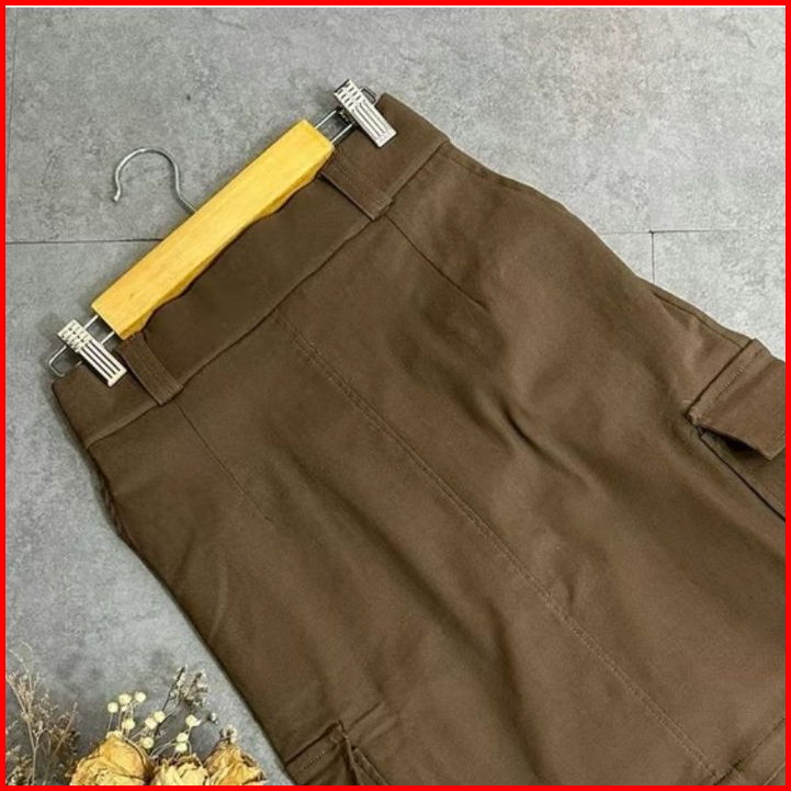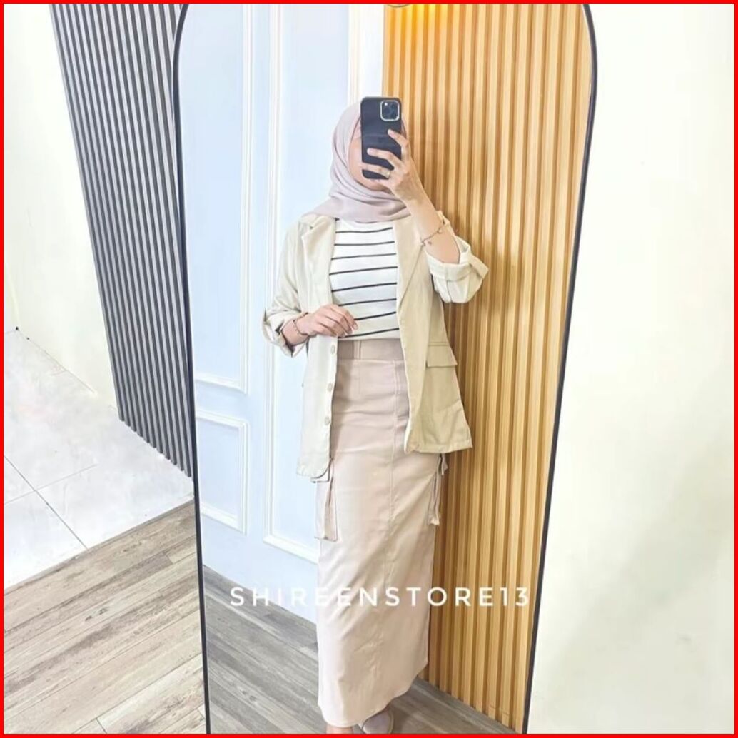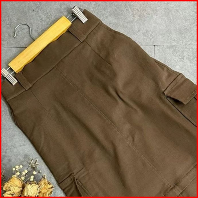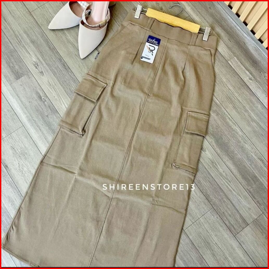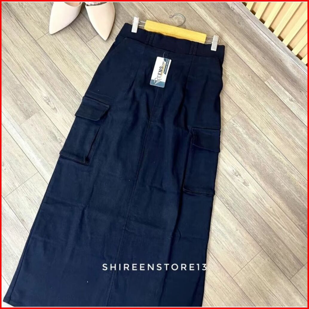 Haziera Store Carra Cargo Rok Korean Style Rok Panjang Wanita Semi Jeans A-line Karet Standar Bahan Melar Elastis
