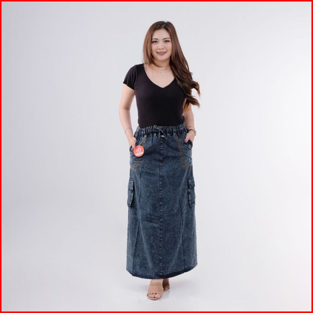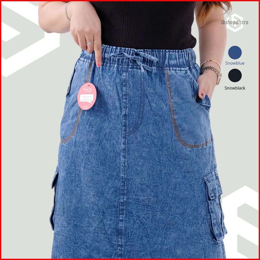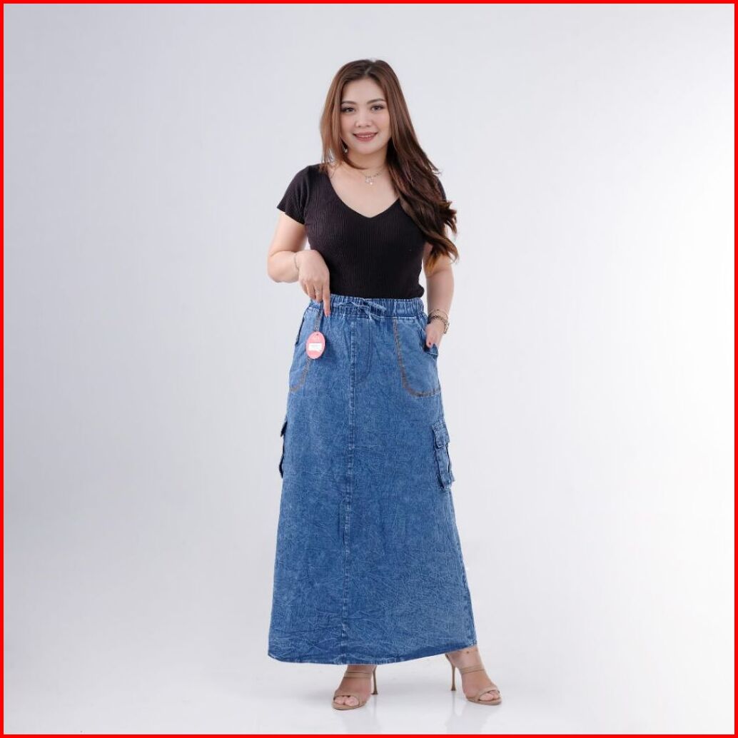 Rok Cargo Jeans Levis Jens Panjang Snow Wanita Jumbo Premium Model A-line Dan Payung