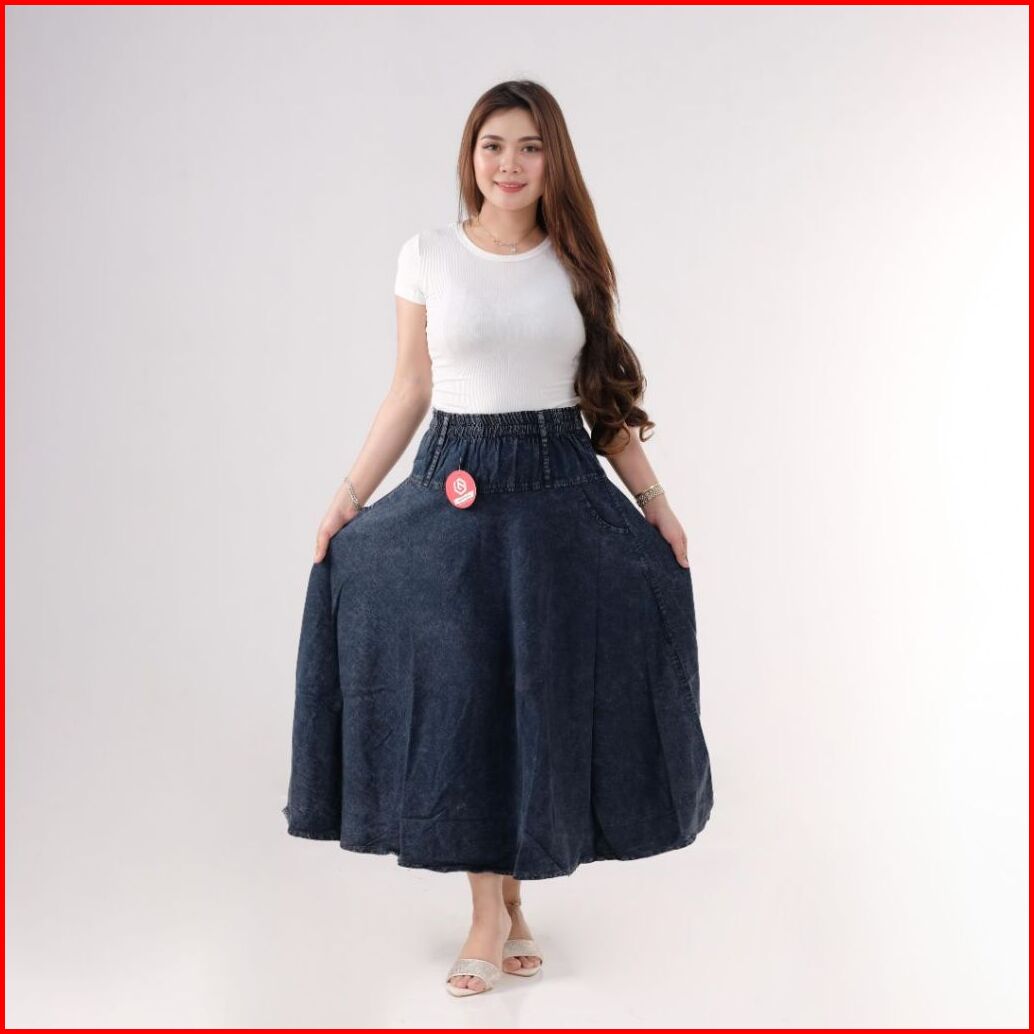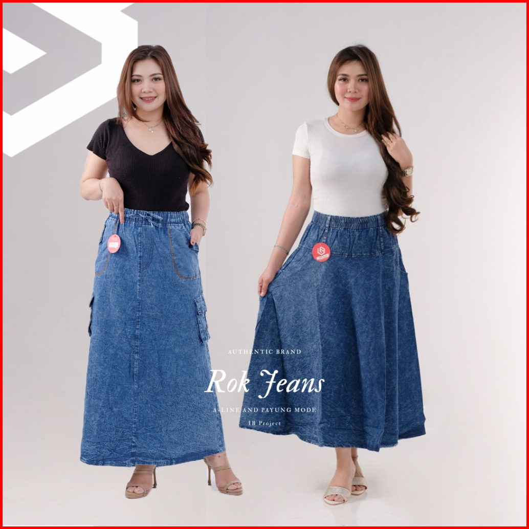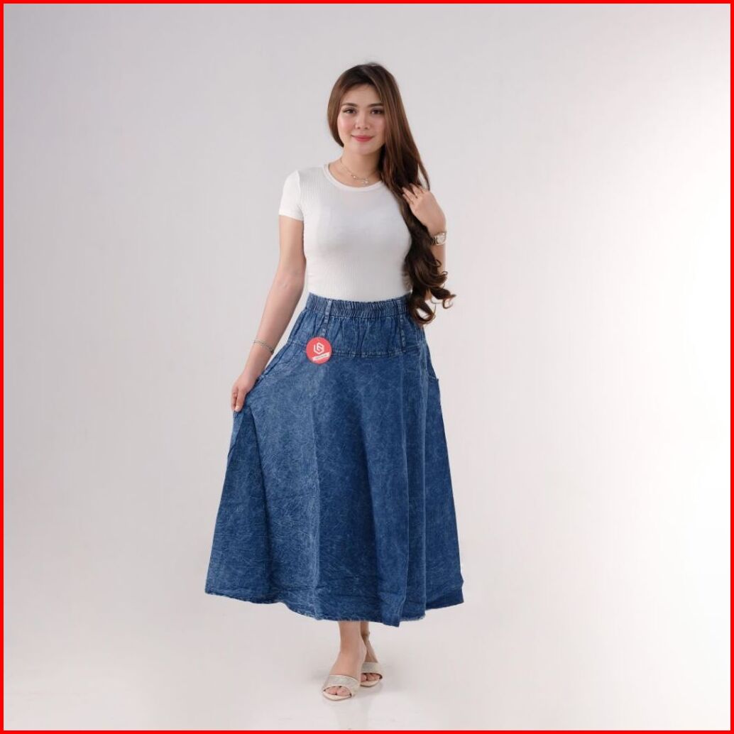 Rok Cargo Jeans Levis Jens Panjang Snow Wanita Jumbo Premium Model A-line Dan Payung