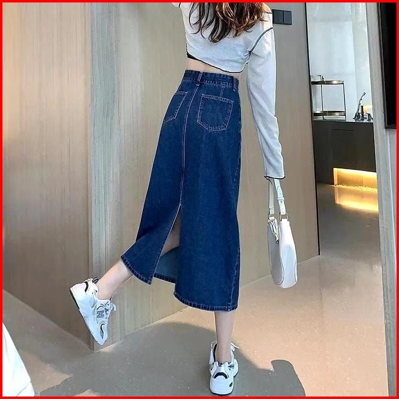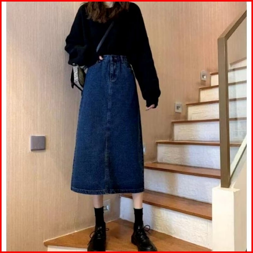 Rok Jeans Highwaist A-line Panjang 7 8 Basic Skrit Jeans 780 Rok Jeans Wanita Korean Style Terbaru