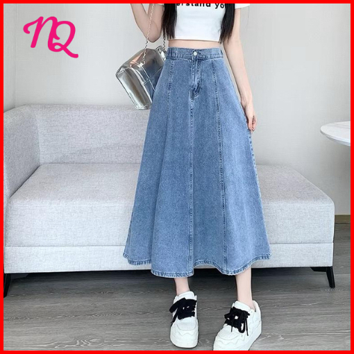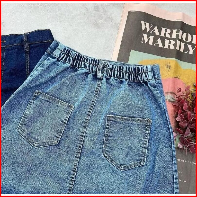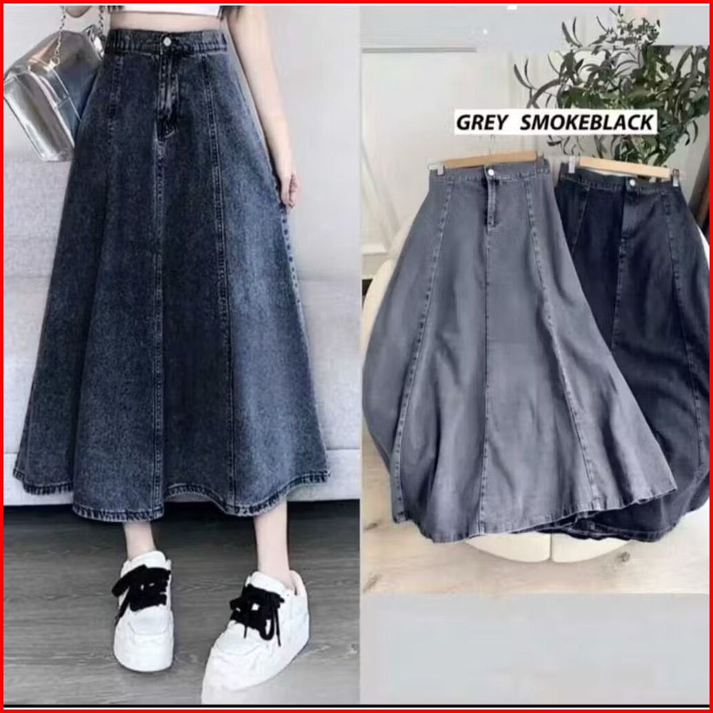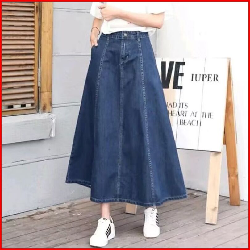Jisso Rok Jeans Mayung Premium Wanita A- Line 7 8 Model Payung Pinggang Karet - Rok Wanita Hihgwaist Skirt Denim