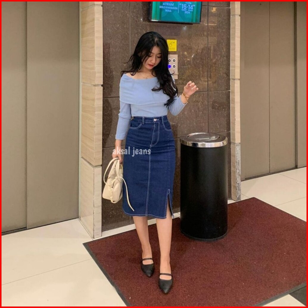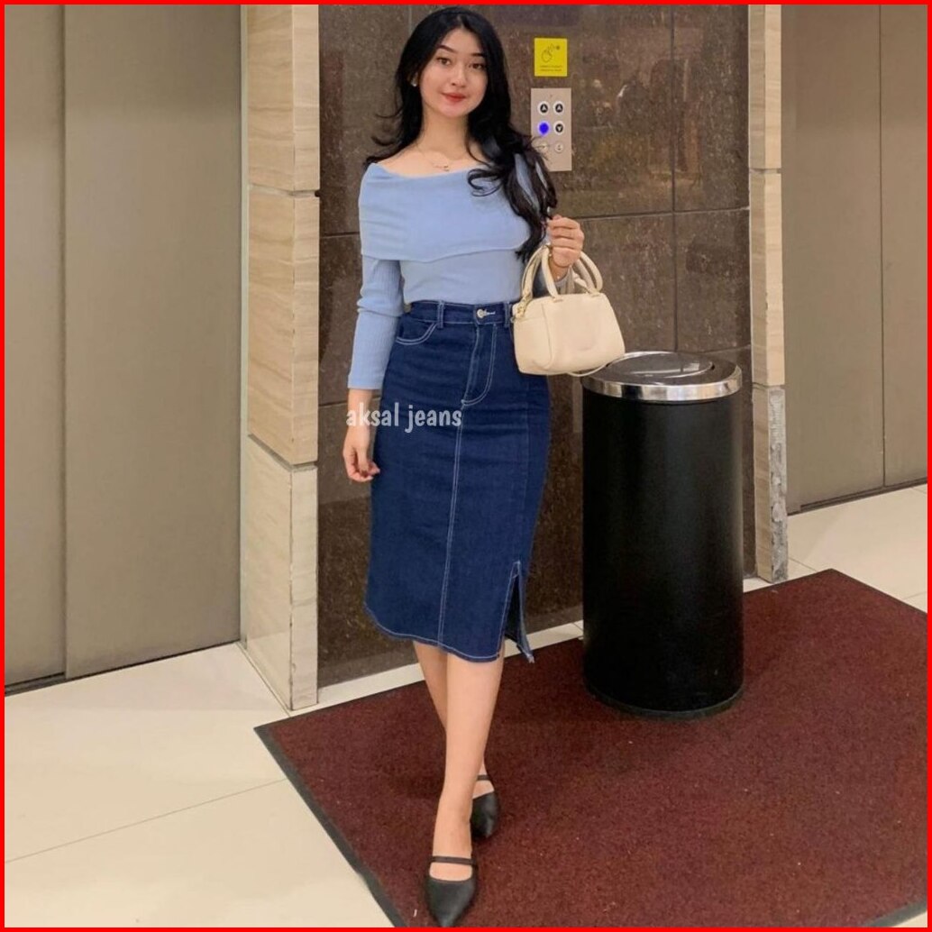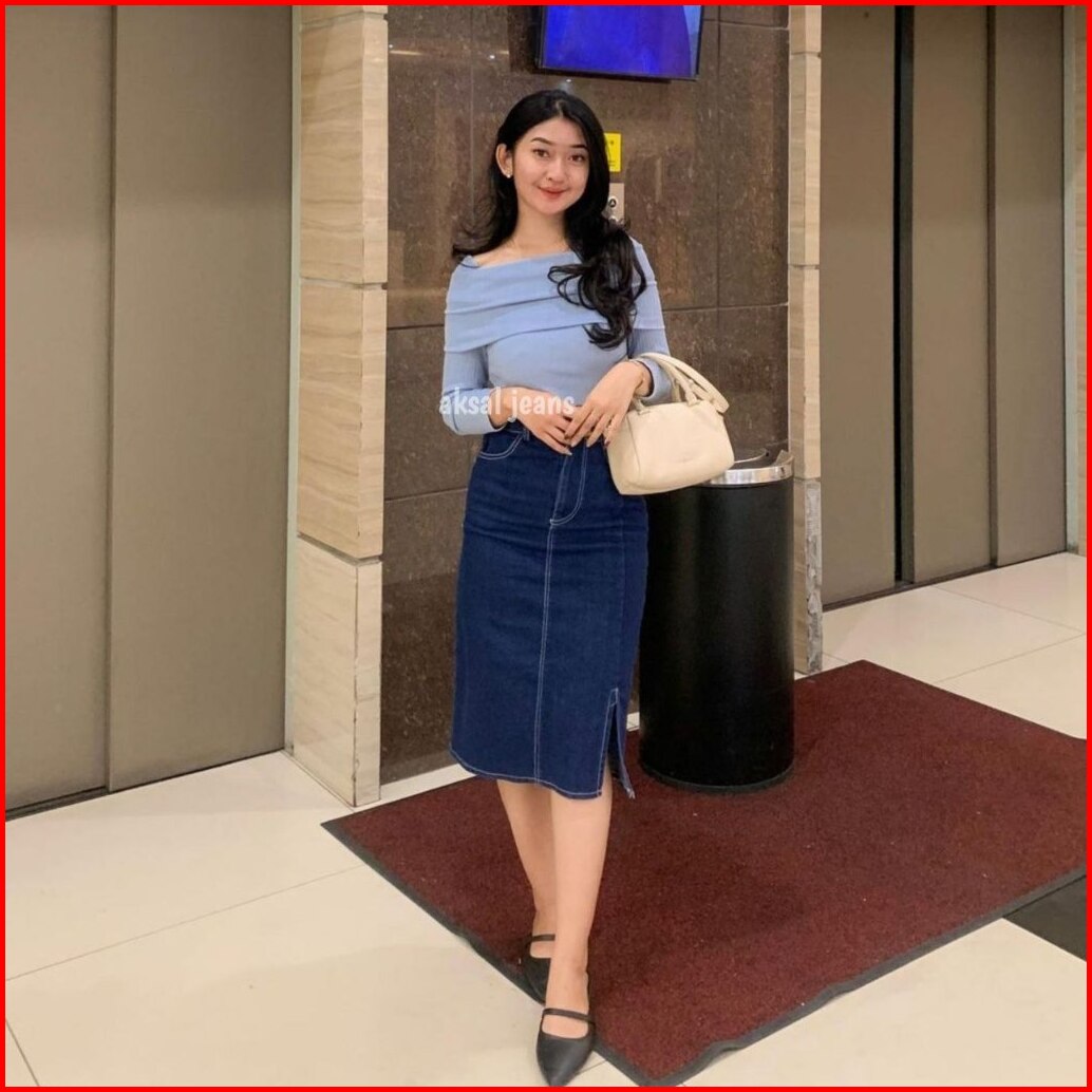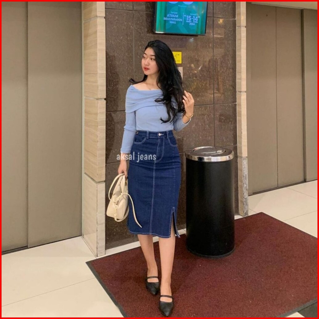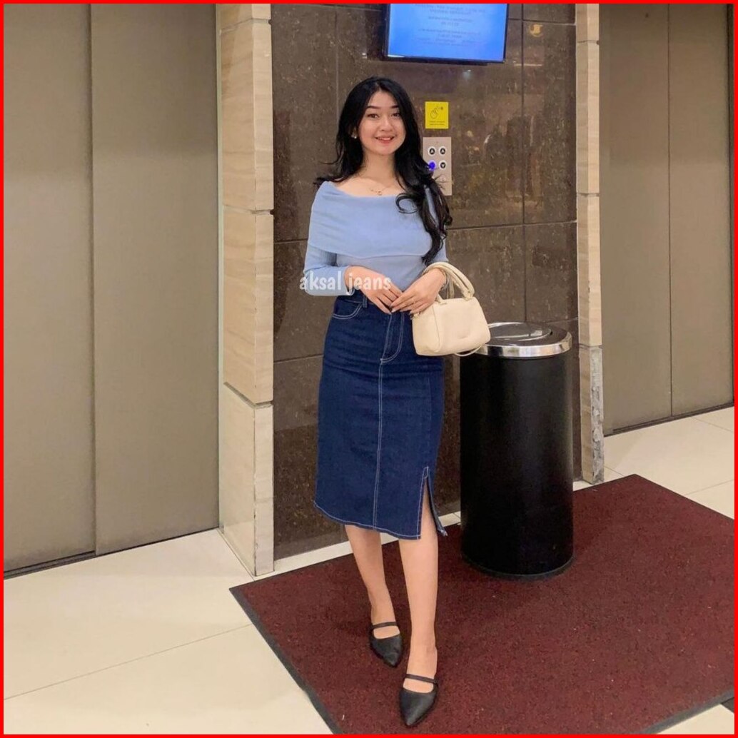 Terra Rok Jeans 7 8 Wanita Highwaist A-line Denim Skirt Aksal Jeans