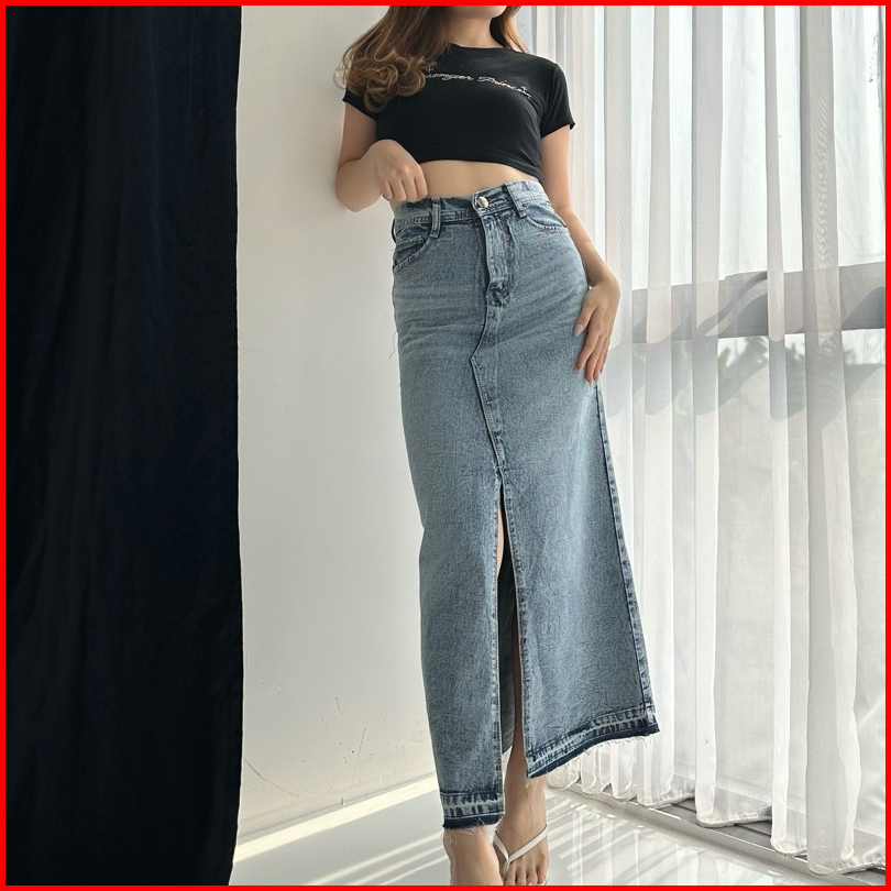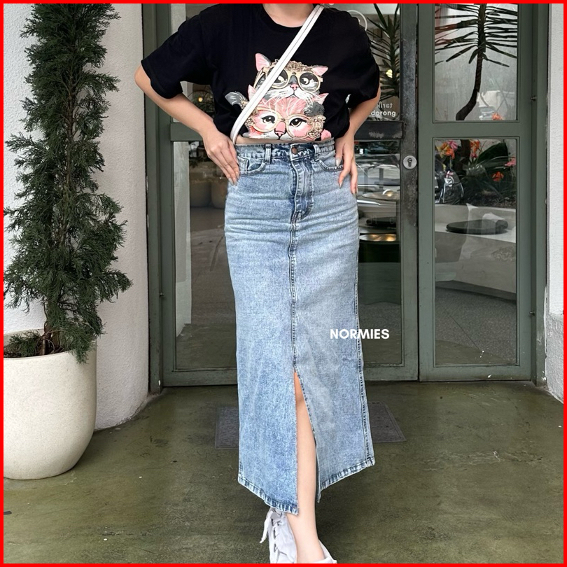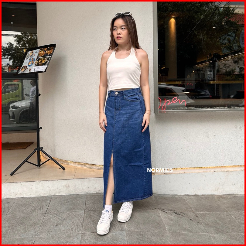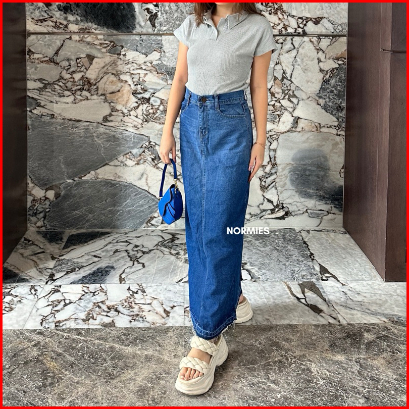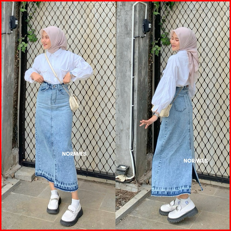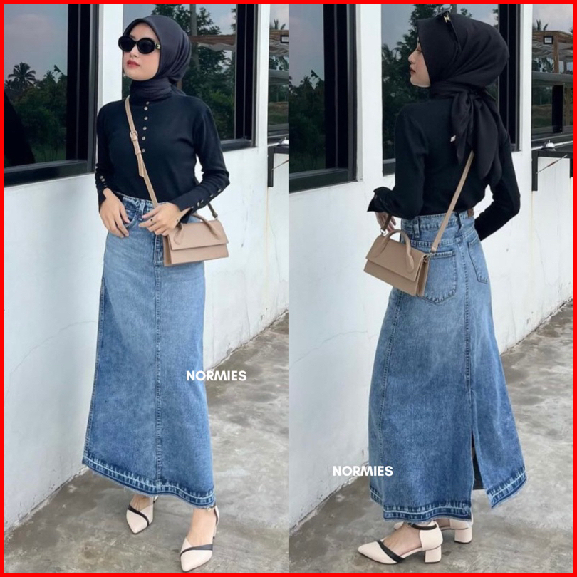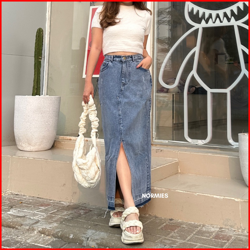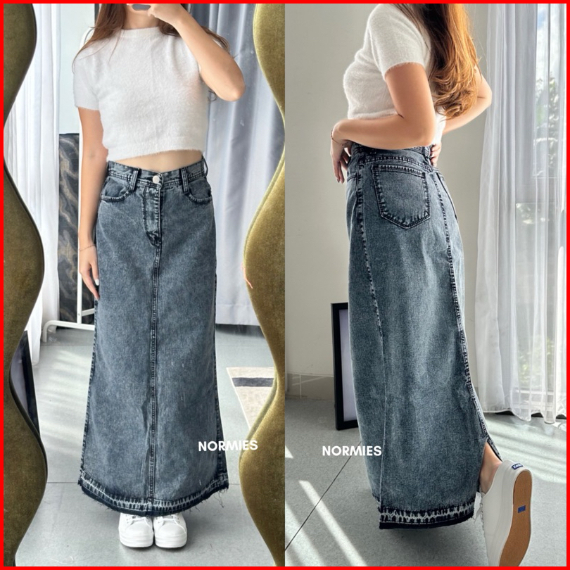 Norm - Macy Snowblue Rumbai Ready Rok Belah Slit Jeans Highwaist Terbaru Ko