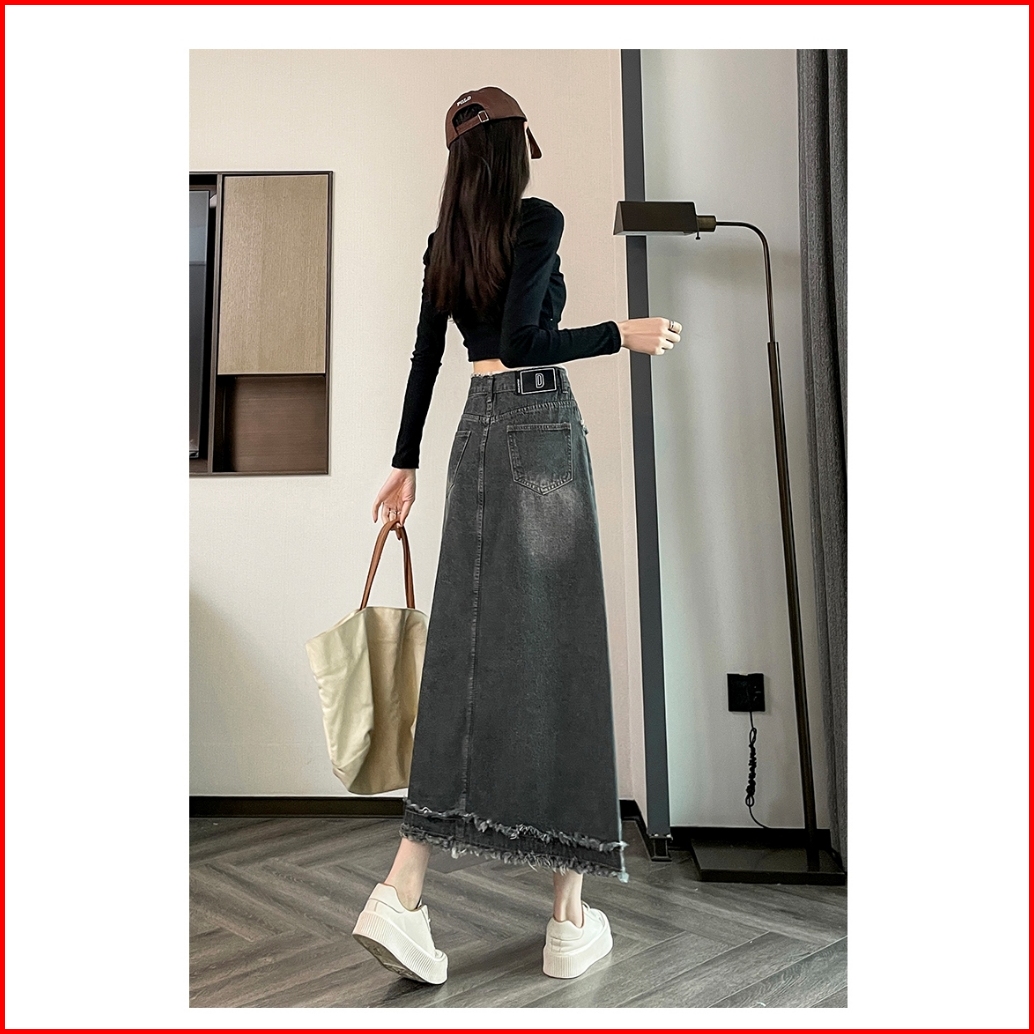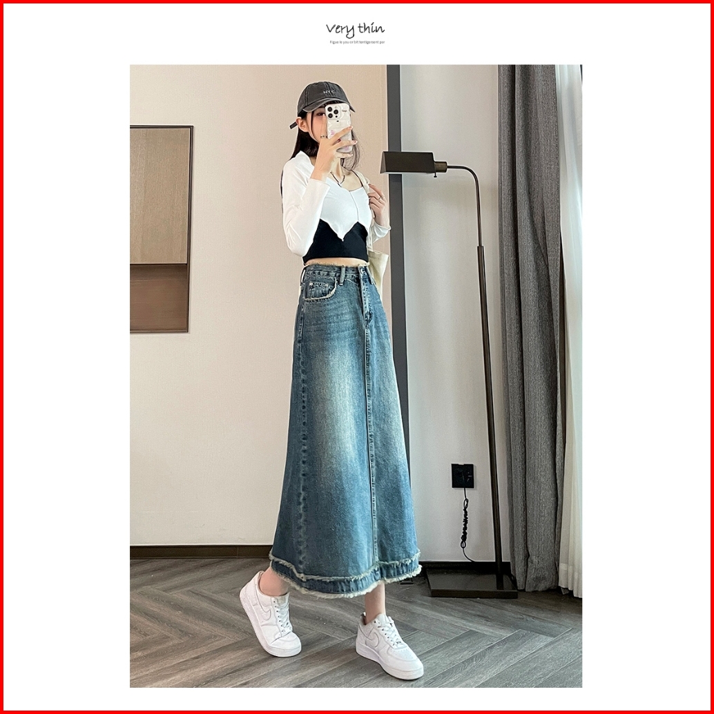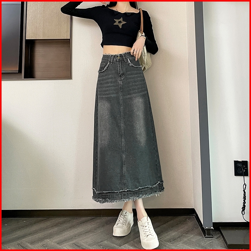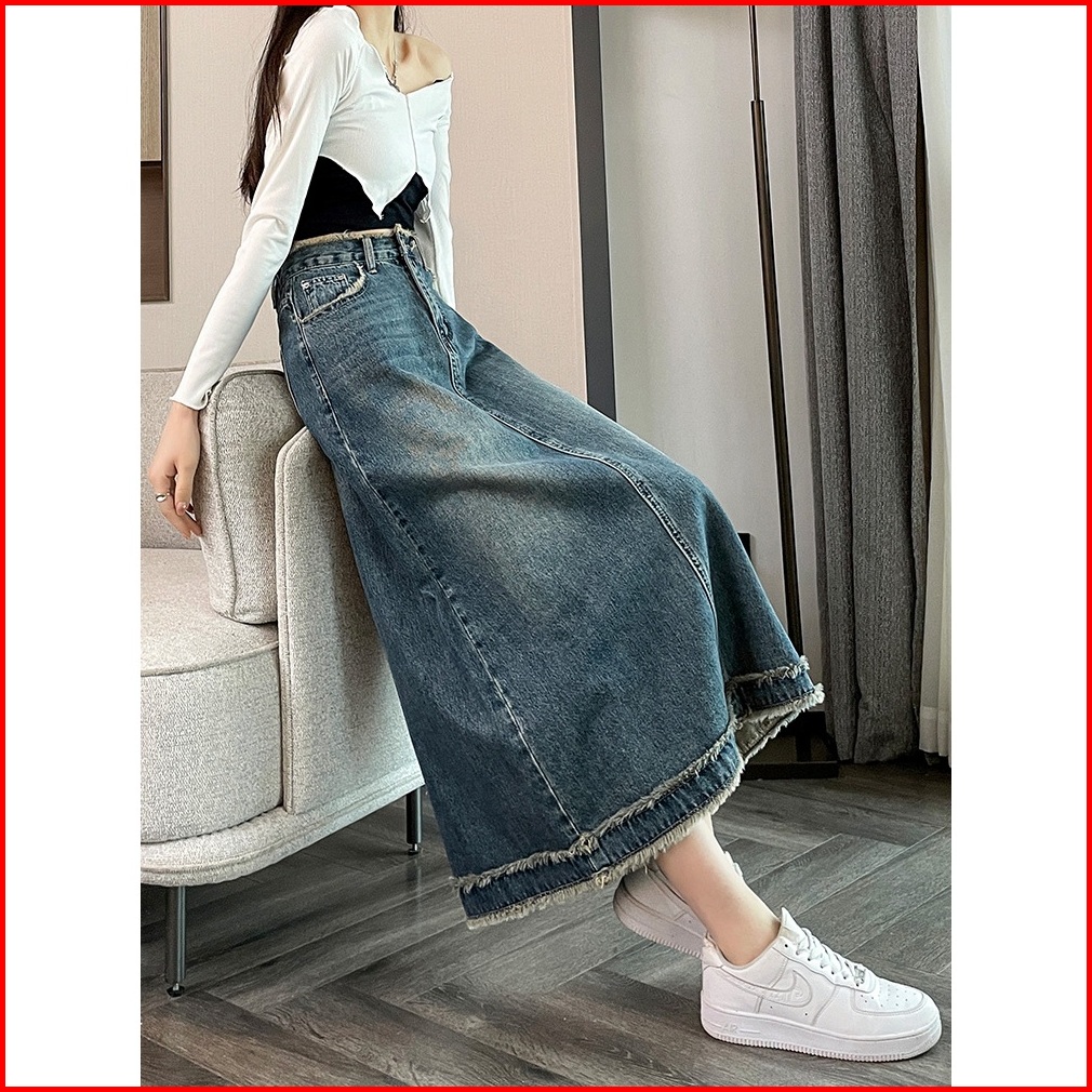 Rok Span Jumbo Highwaist Wanita Korean Style Rok Lepis Denim Pinggang Tinggi Wanita Rok Jeans Cargo Gaun Mid-length Retr