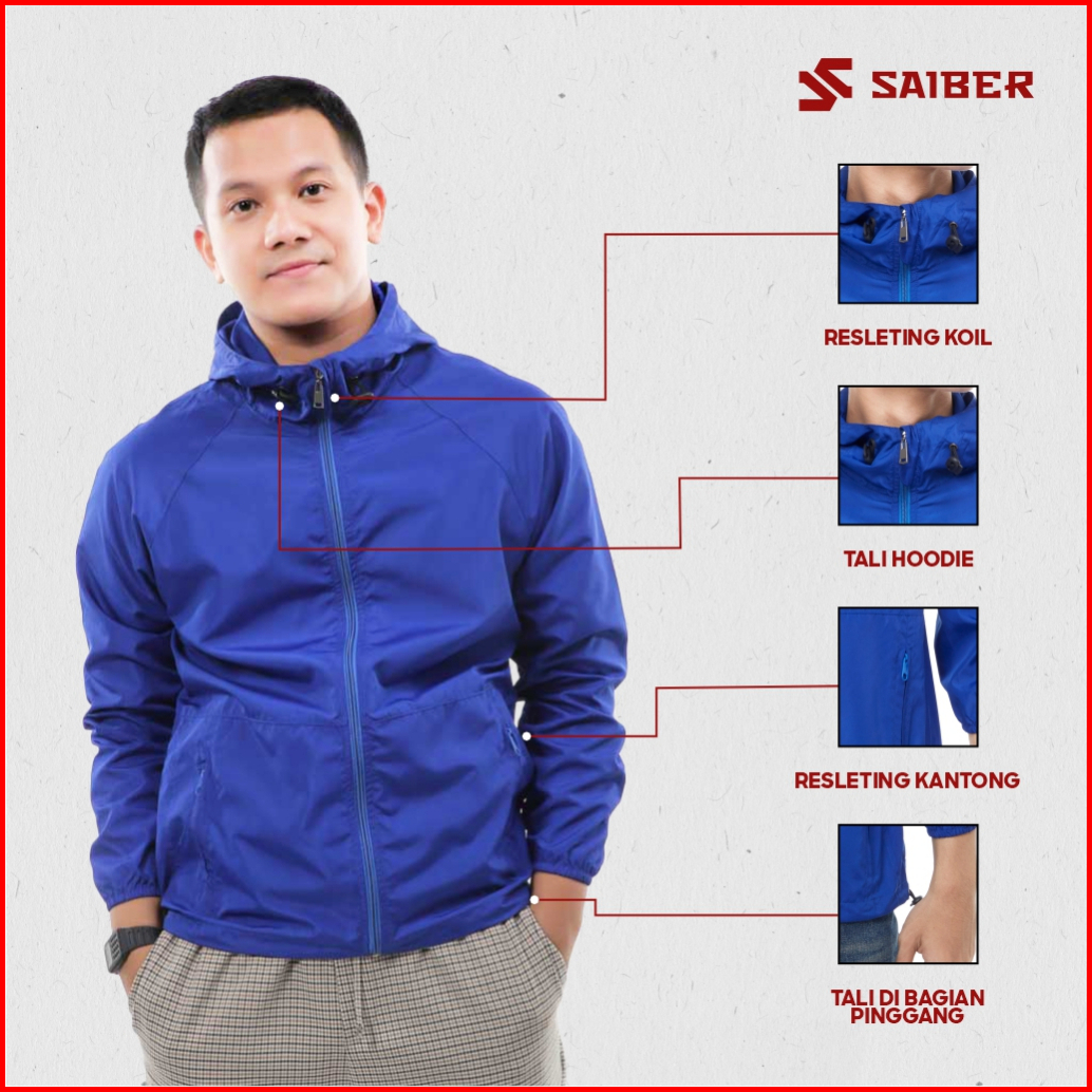 Saiber - Jaket Basic Windbreaker Olahraga Parasut Warna Biru