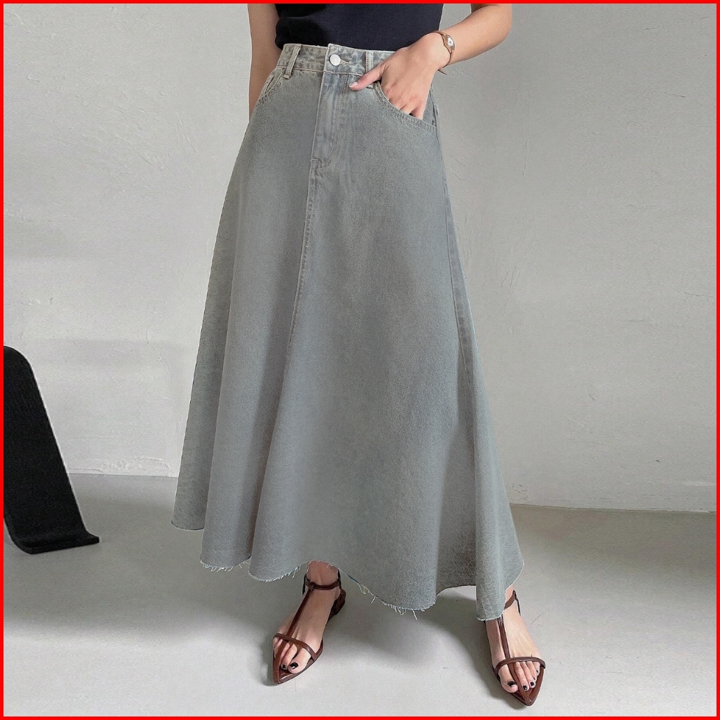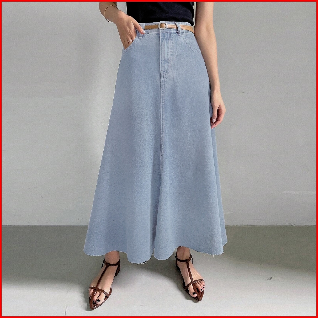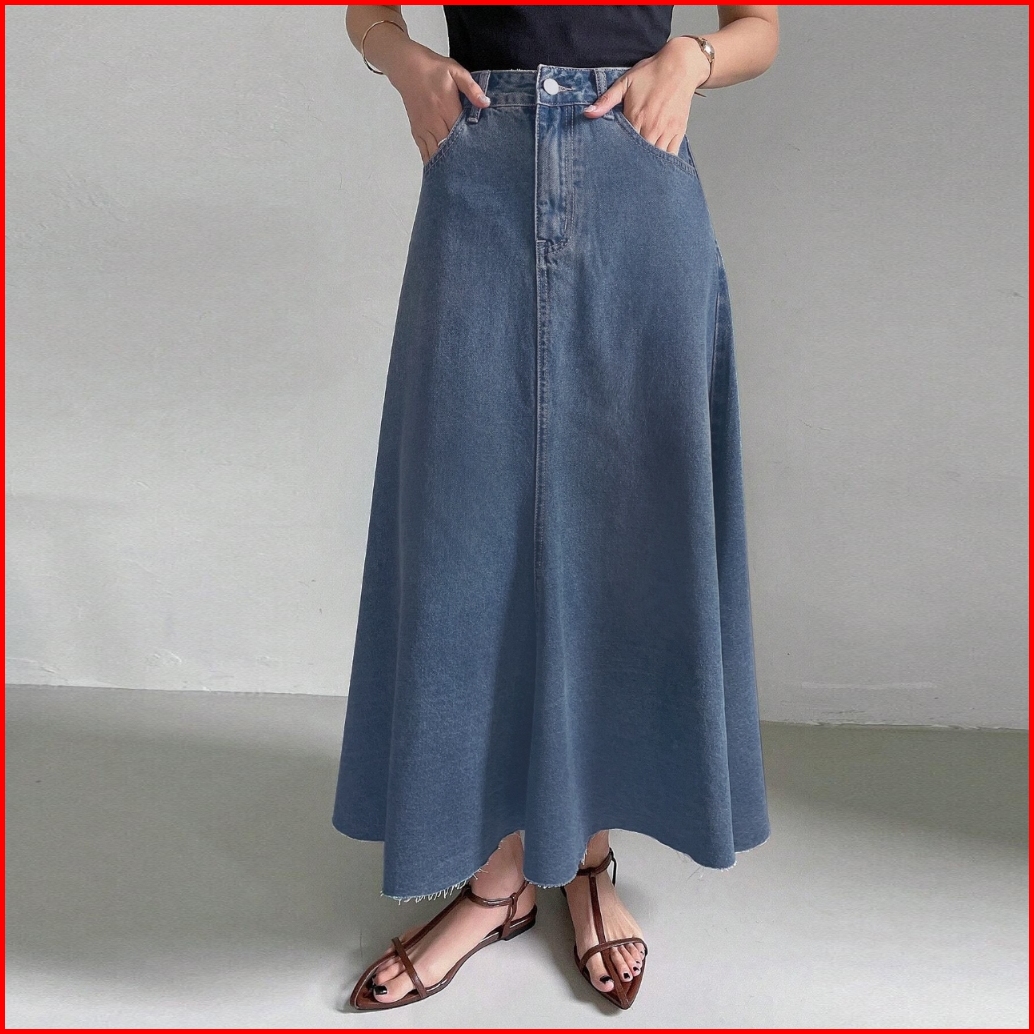 Rok Jeans Wanita Fashion Elegan Korean Style A-line Denim Maxi Skirt