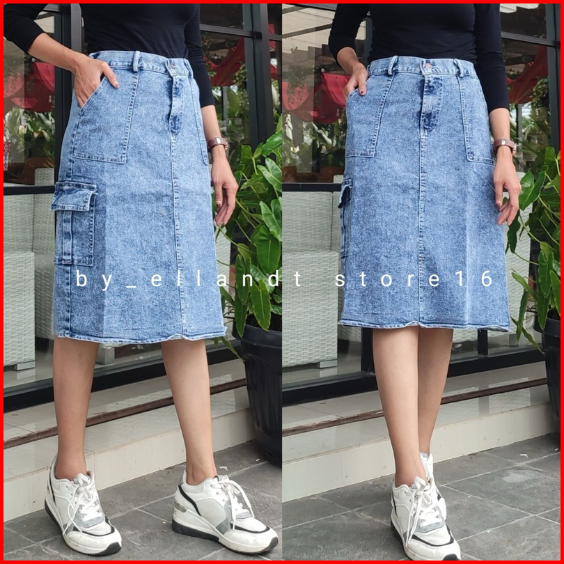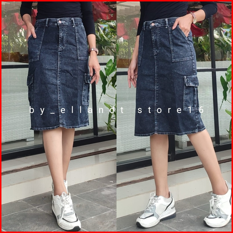 Rok Jeans Pendek Kargo Dan Kancing
