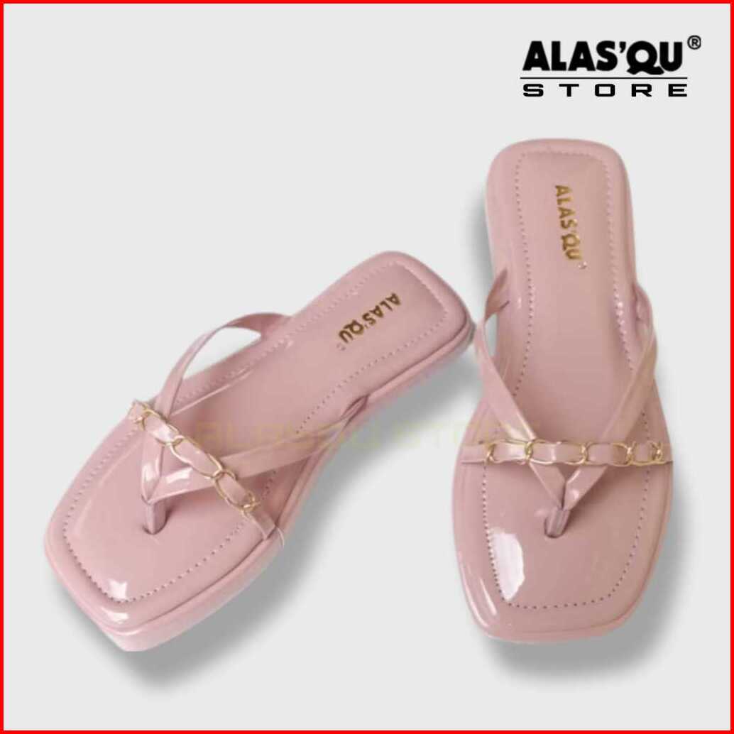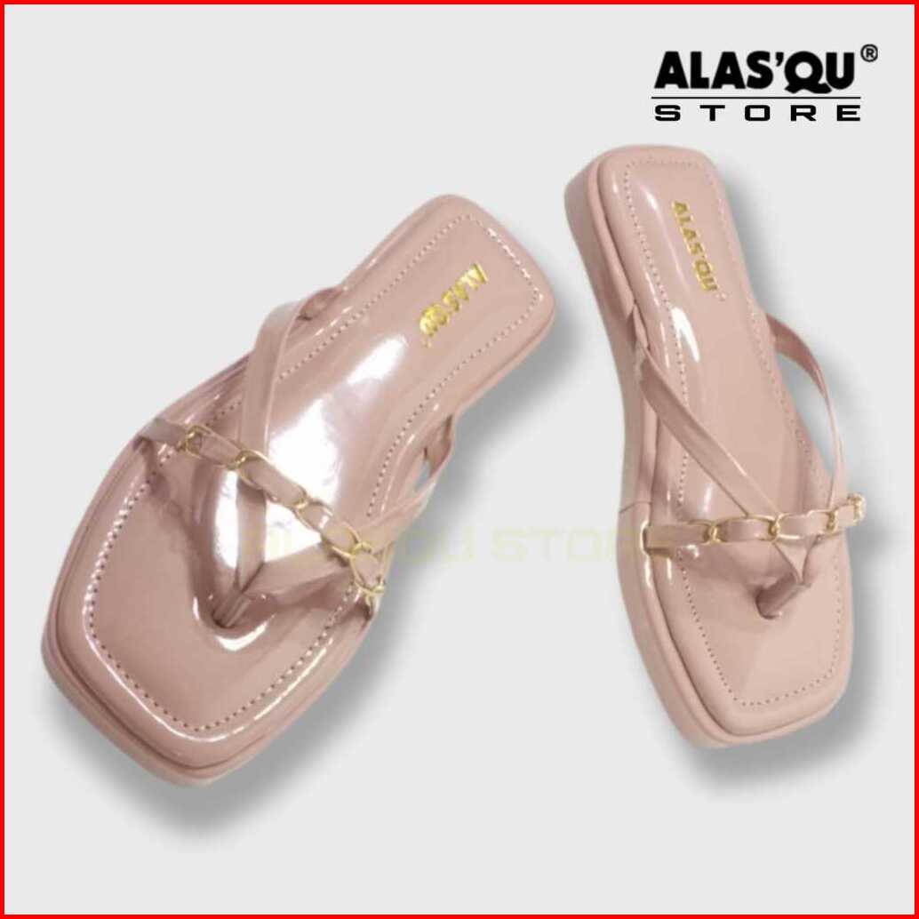 Alasqu Sandal Wanita Flatform Jepit Rante Kekinian Terlaris