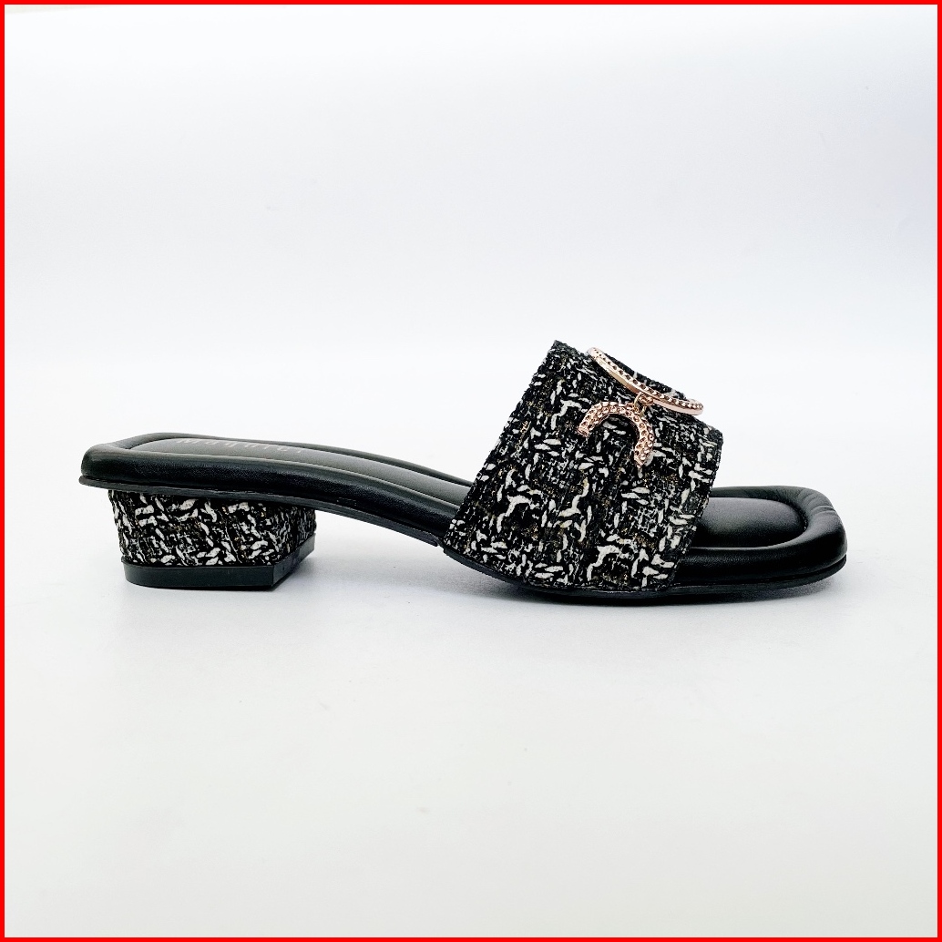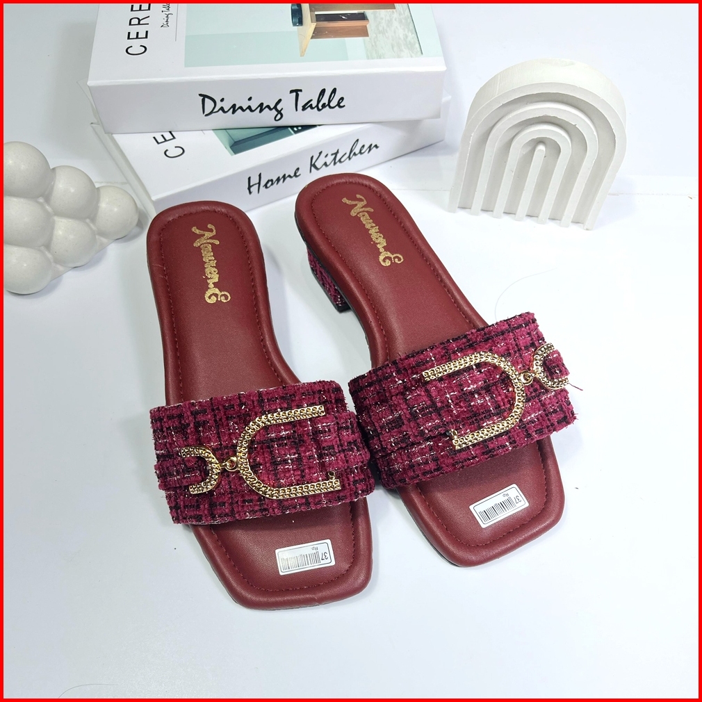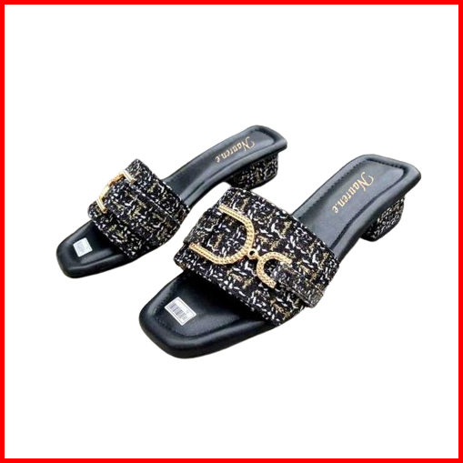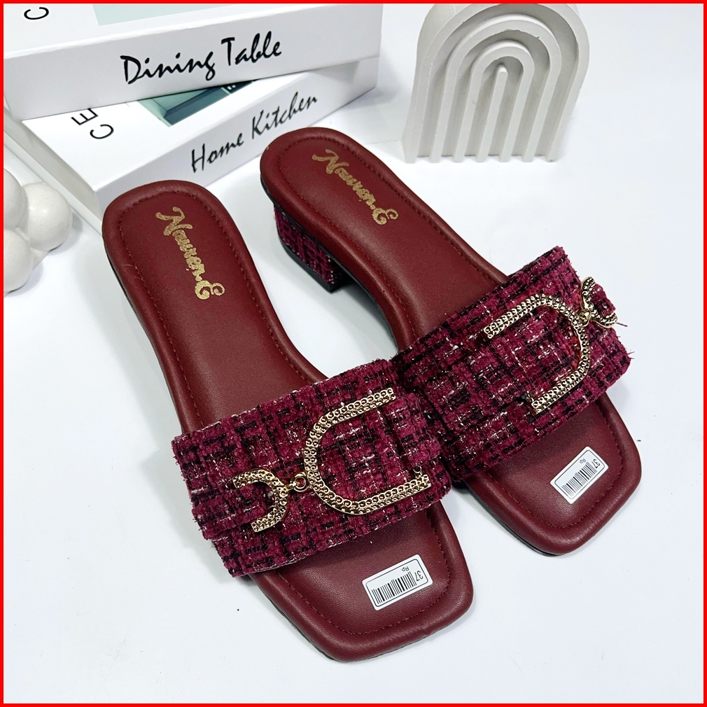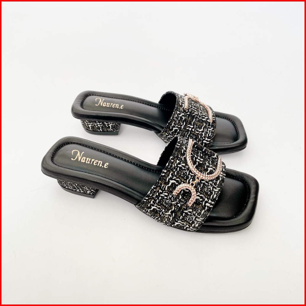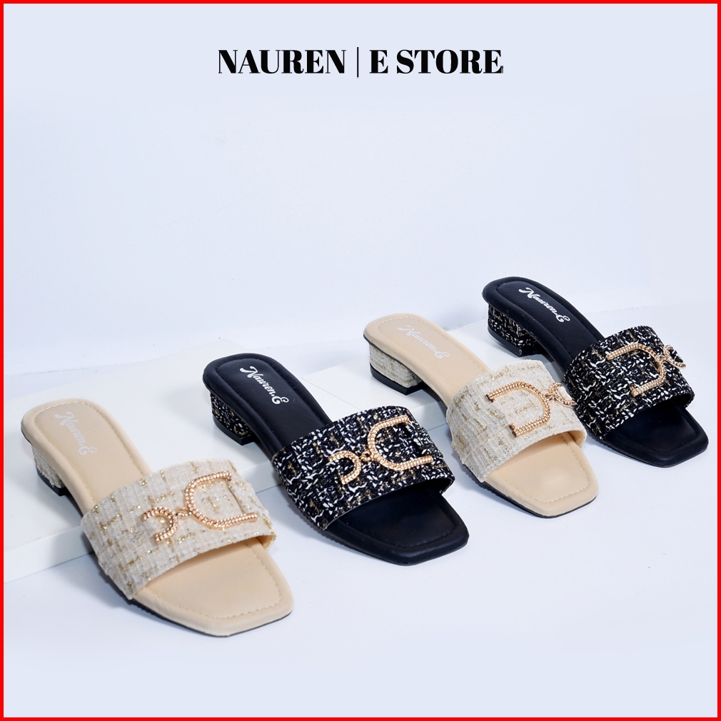 Nauren Wila Heels Sandal Wanita Hak 3 Cm Wanita Kekinian Bahan Kanvas Rajut Variasi Dd