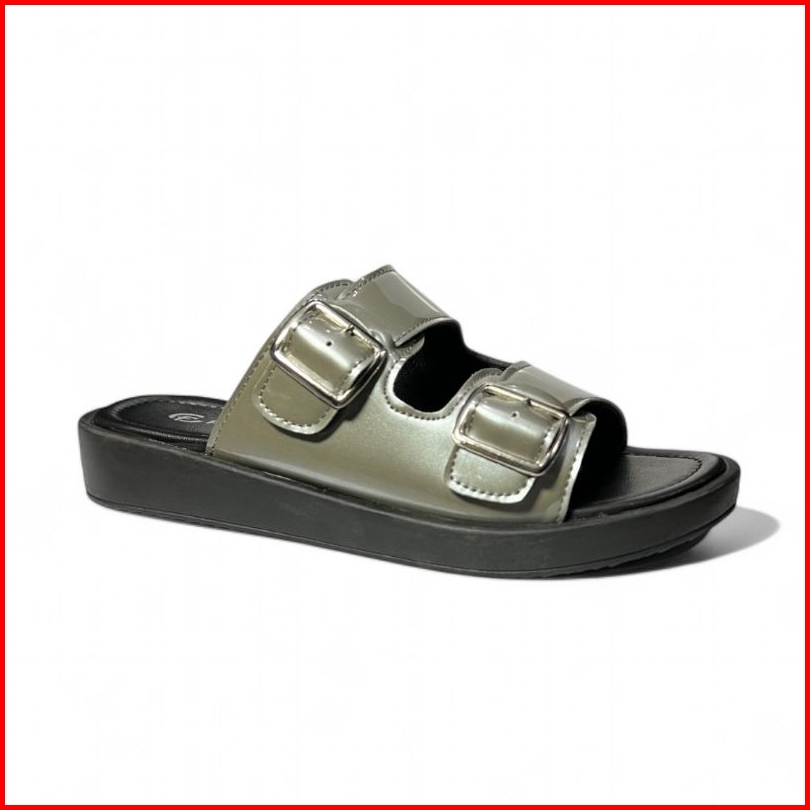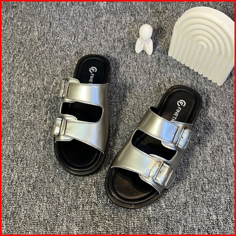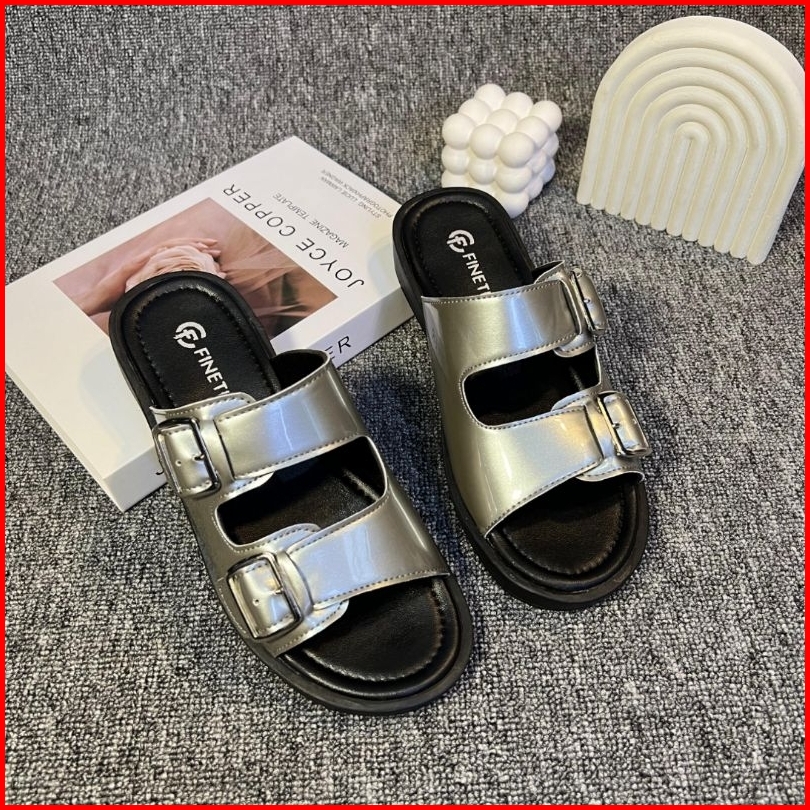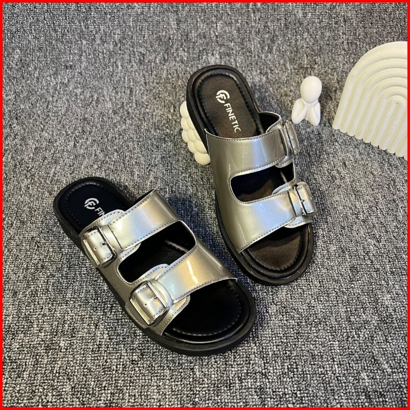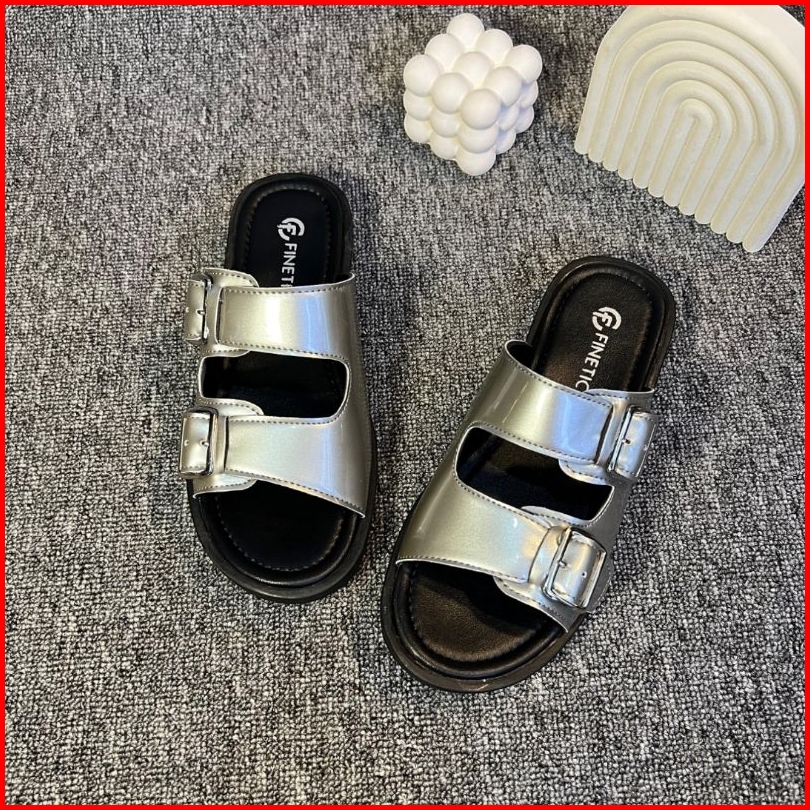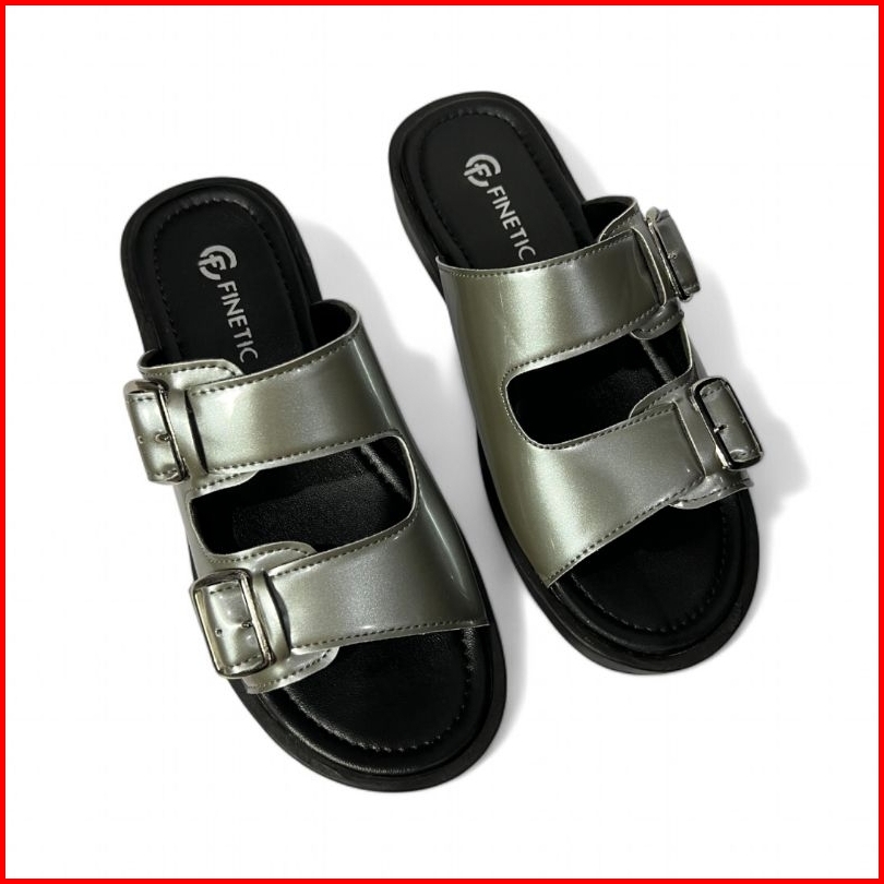 Finetic Sandal Wanita Platform Kekinian Simple Eleghan Silver Glossy Cewek