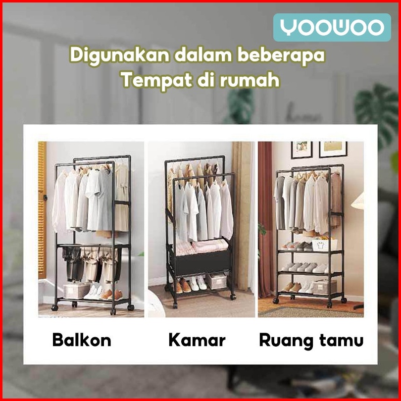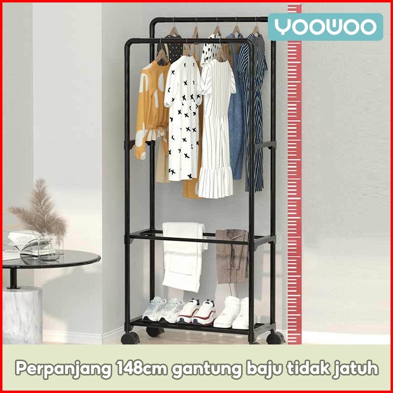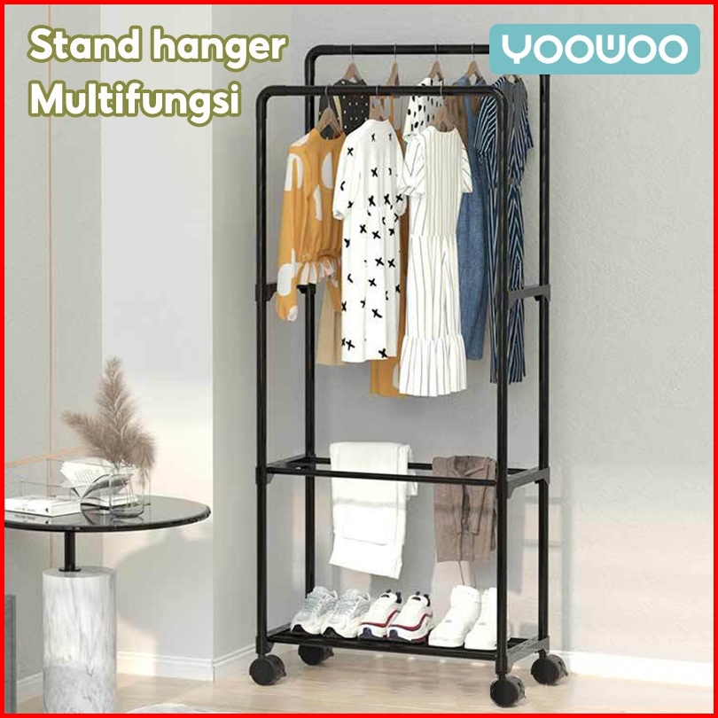 Yoowoo Rak Gantungan Baju Stand Hanger Rak Gantungan Stand Hanger Baju Pakaian Rak Besi Jemuran Serbaguna Baju Rack Gant
