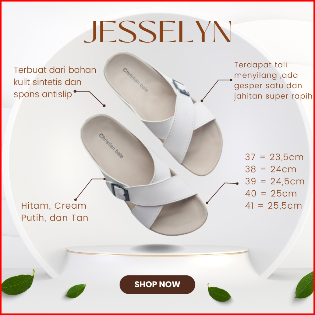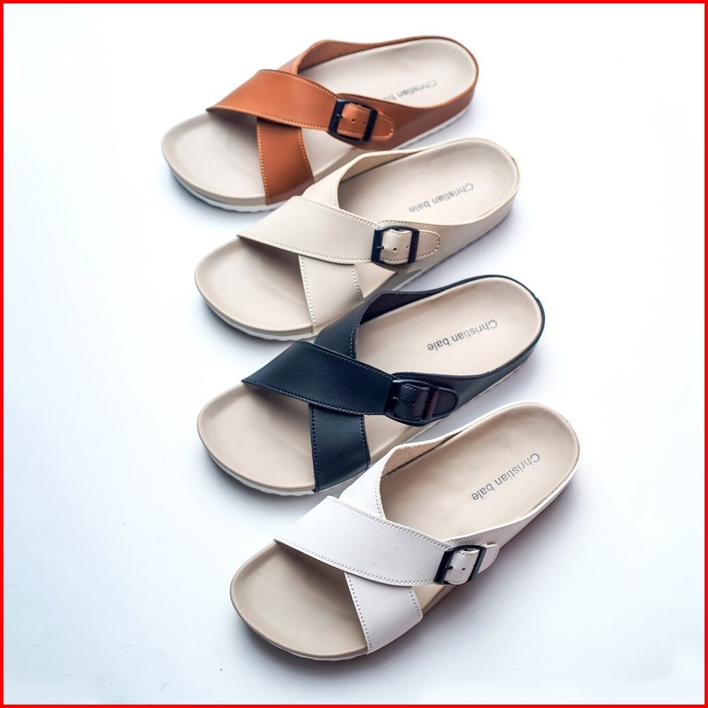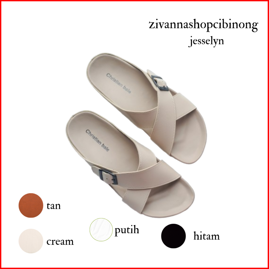 Christian Bale Jesselyn Sandal Wanita Kekinian Simple Elegan Sendal Flat Cewek Gesper Terbaru