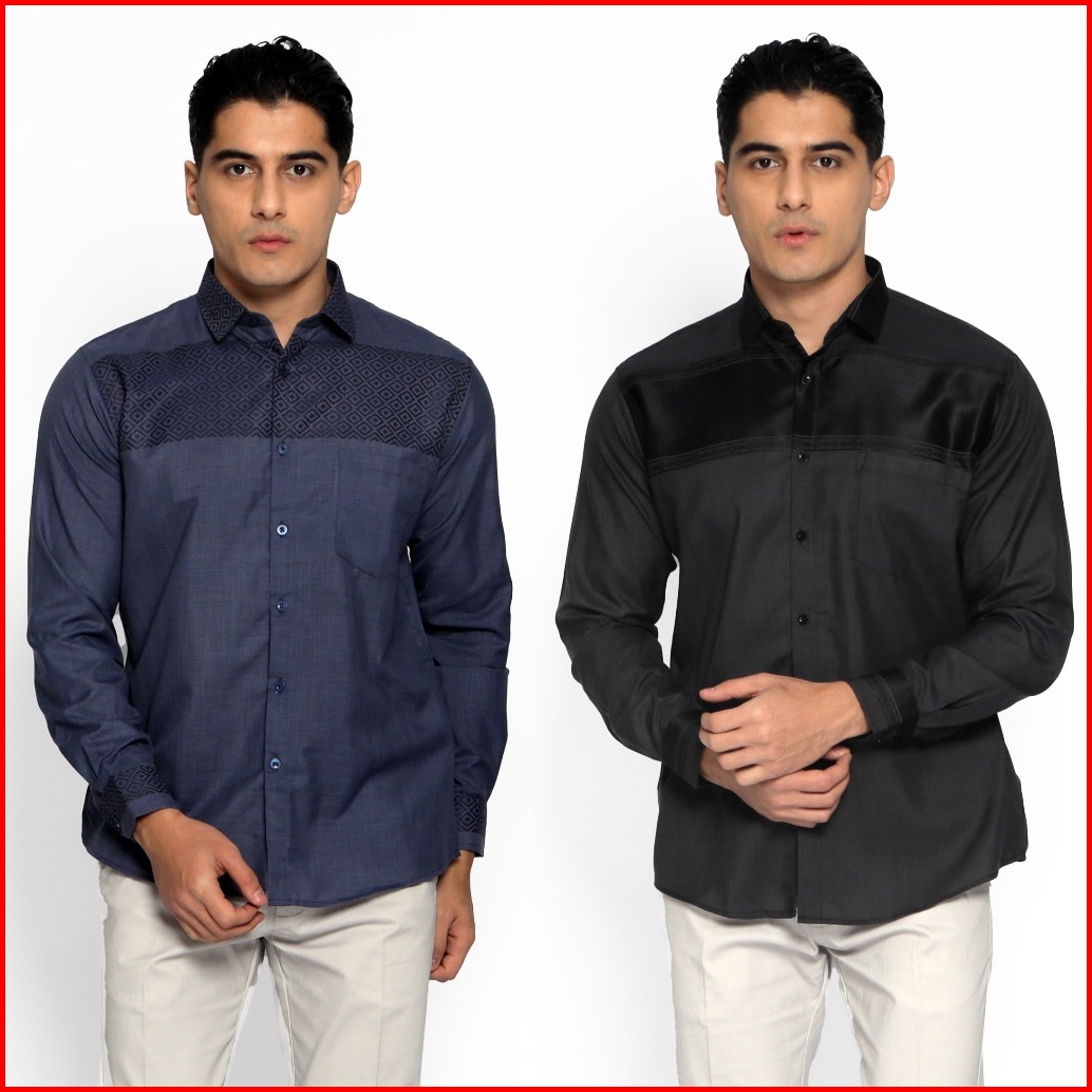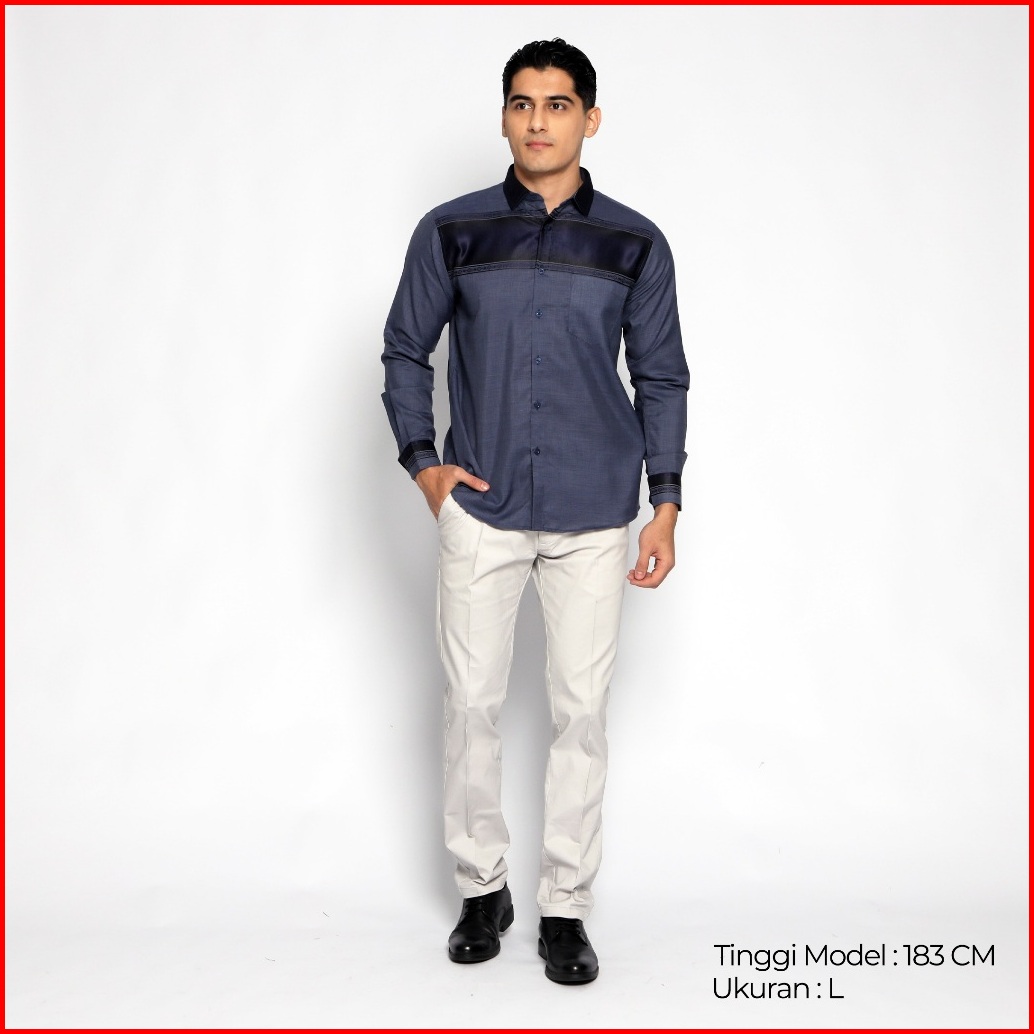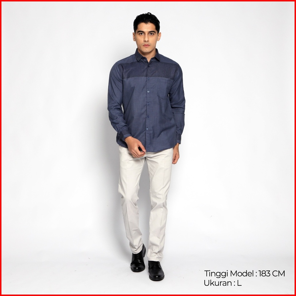 Simple Perfect Kemeja Pria Lengan Panjang Casual Kemeja Horizontal Henry
