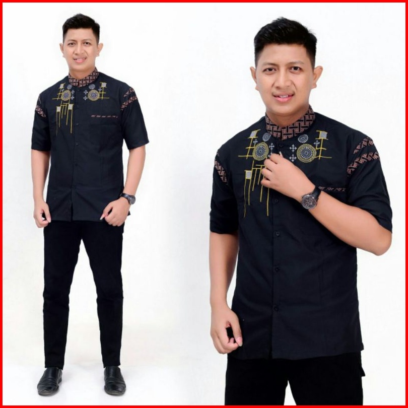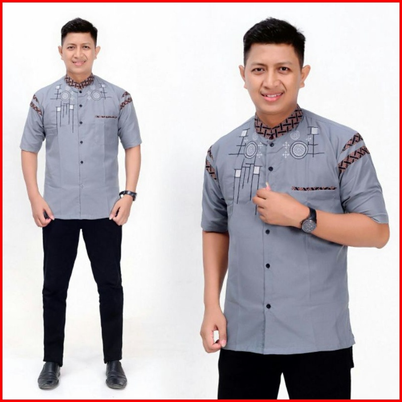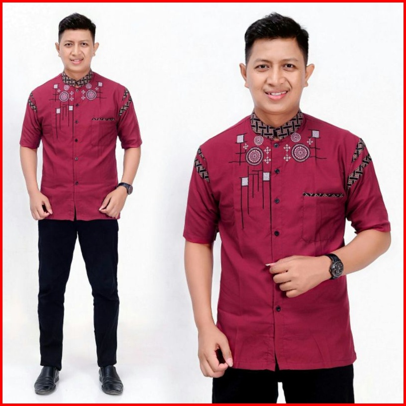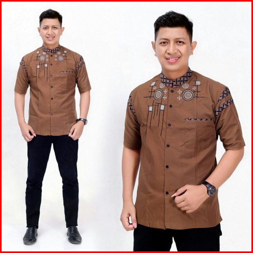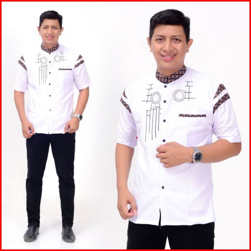 Baju Koko Pria Muslim Lengan Pendek Motif Lato