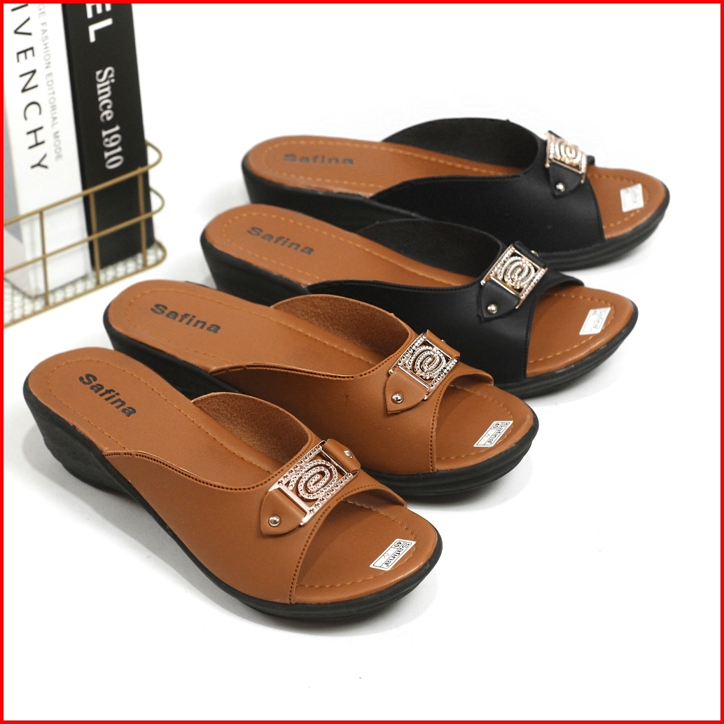 Sandal Wanita Wedges Selop Slop Tinggi Hak Heels Kondangan Kekinian Terbaru Terlaris Karet Ah07