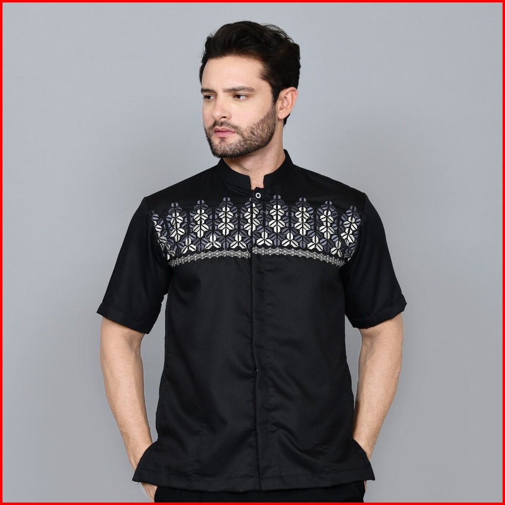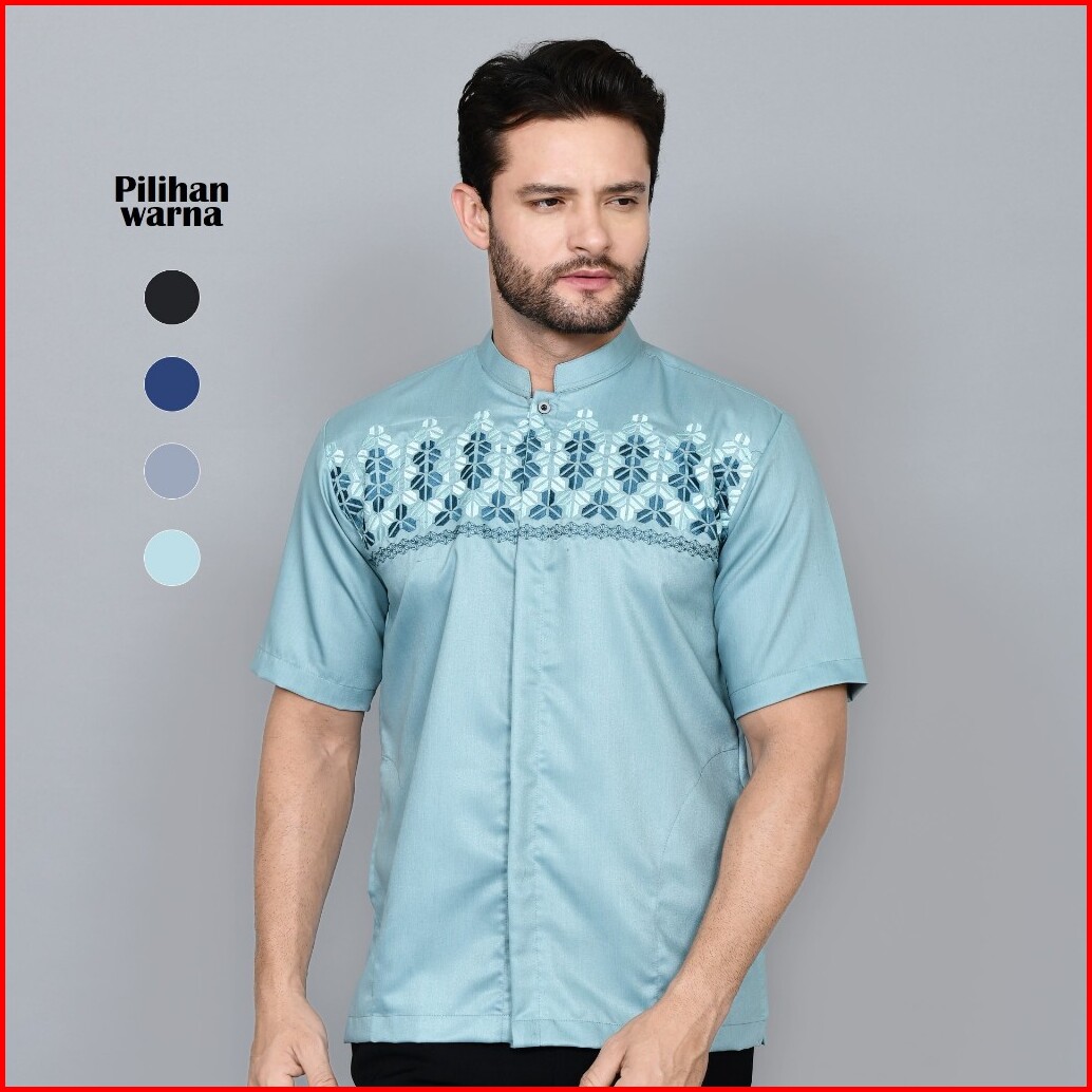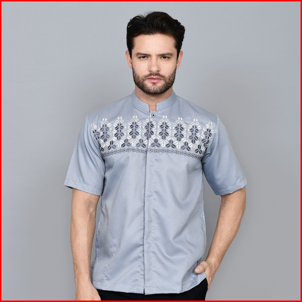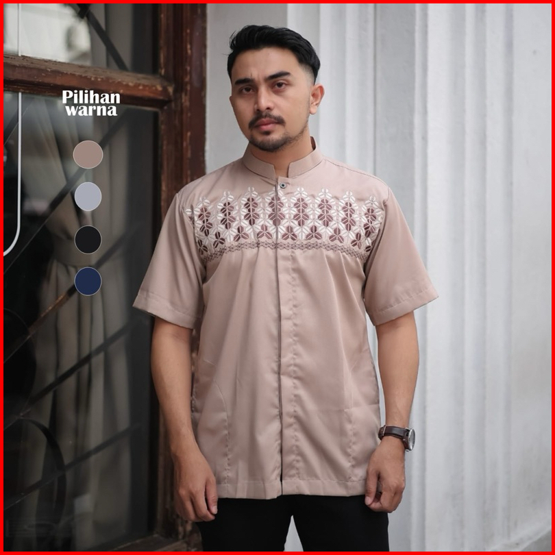 Baju Koko Pria Bordir Tangan Pendek Katun Madina Warna Katun Ag11