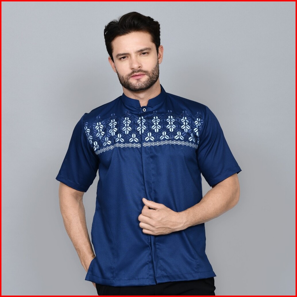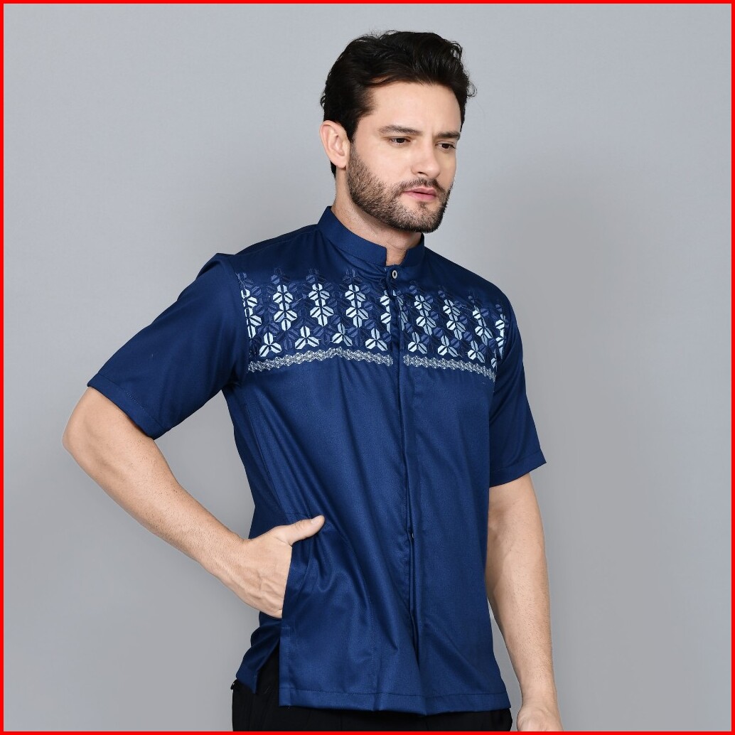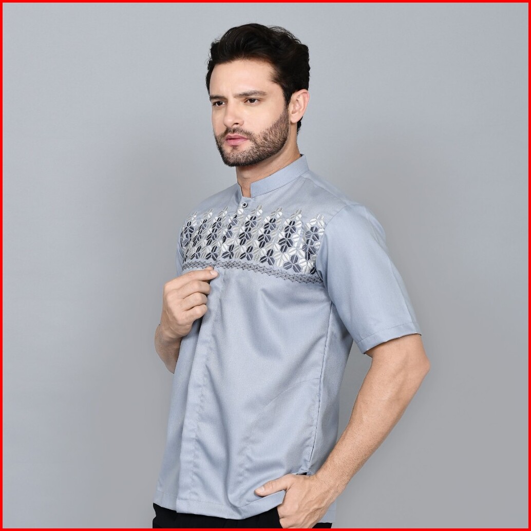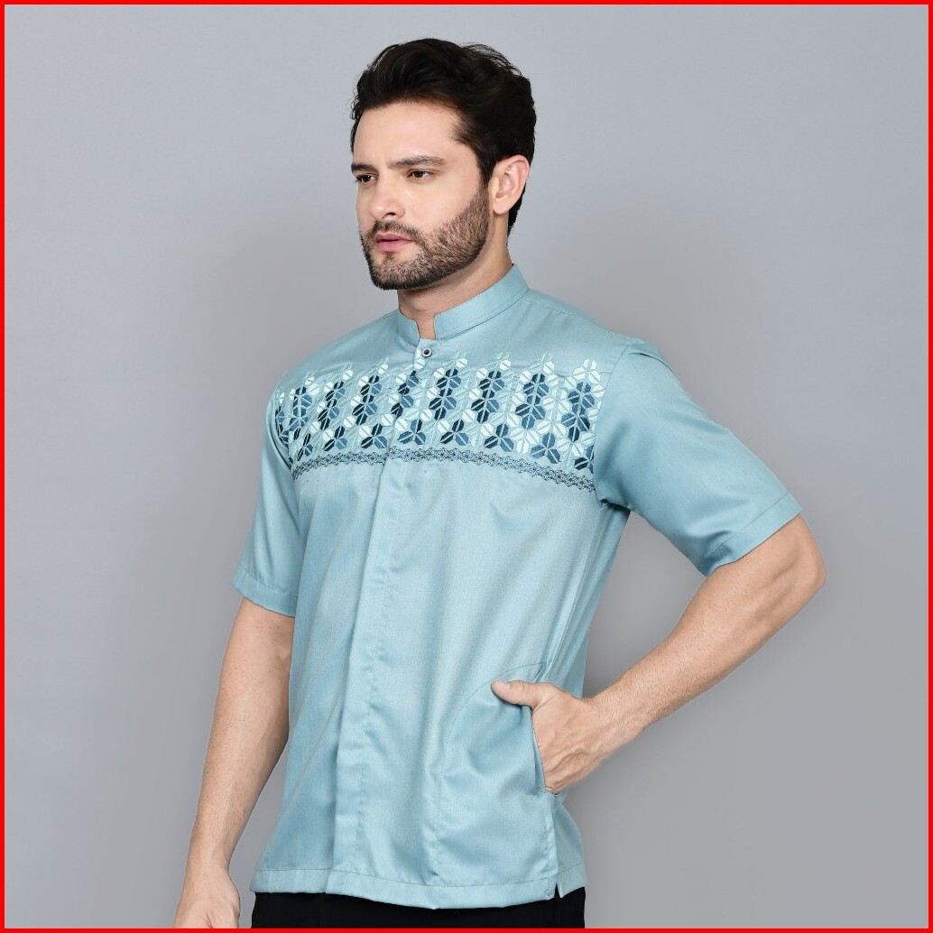 Baju Koko Pria Bordir Tangan Pendek Katun Madina Warna Katun Ag11