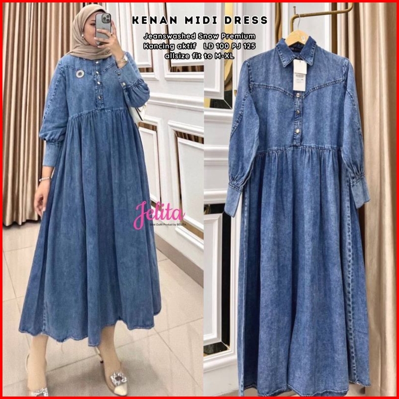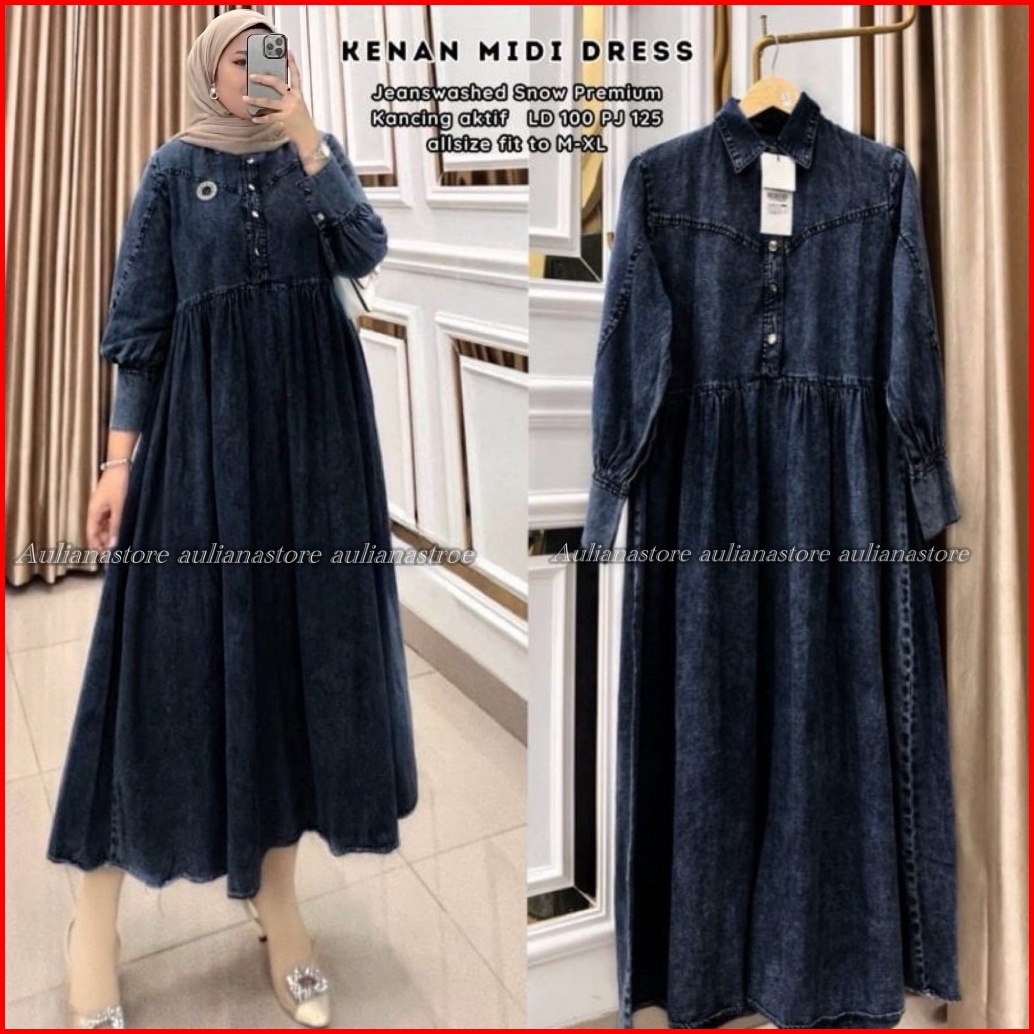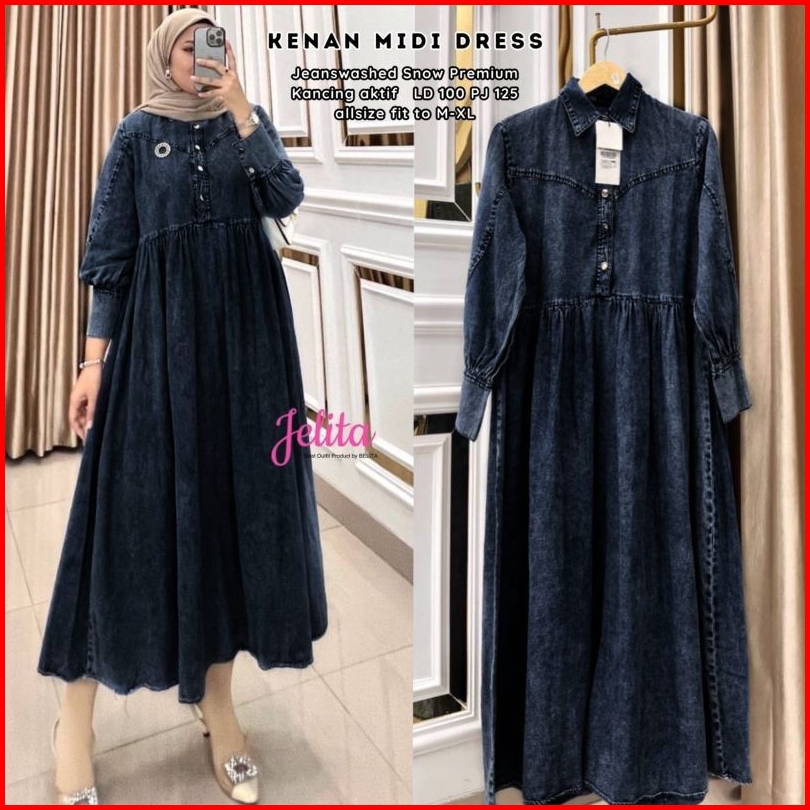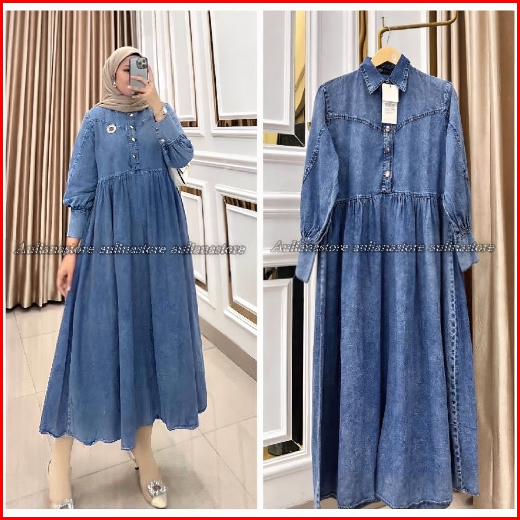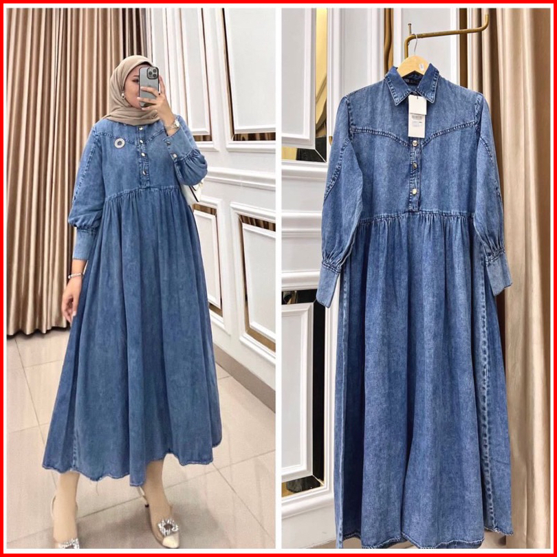 Gamis Jeans Jumbo Tasya Midi Dress Jeans Wash Premium Ld 110 Terbaru Dress Denim Jumbo Wanita Busui