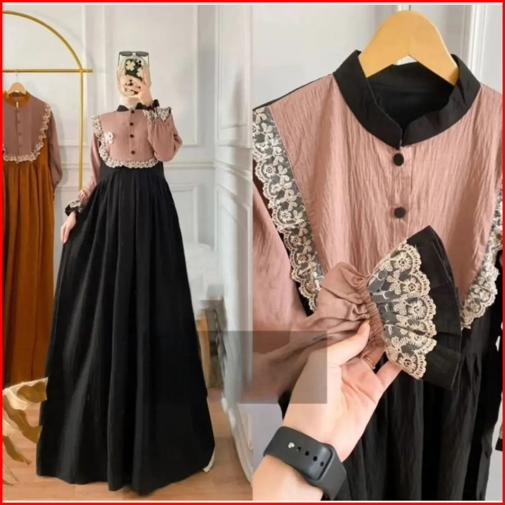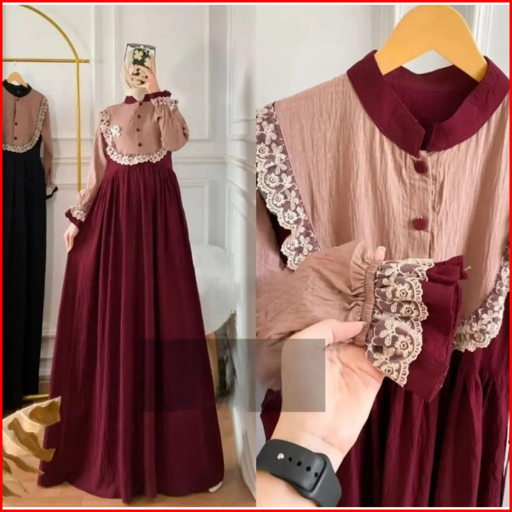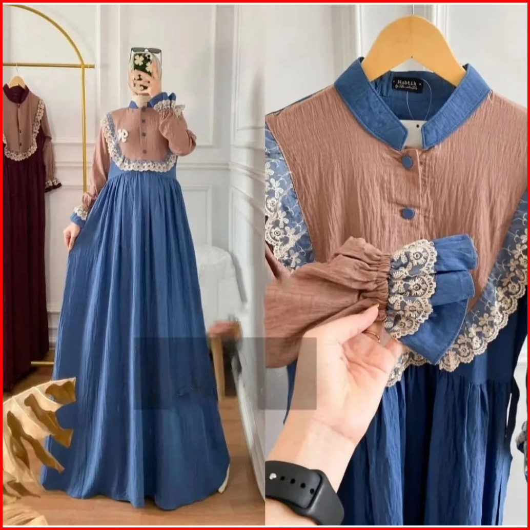 Gamis Wanita Mewah Elegan Tiramacha Dress Gamis Kekinian Gamis Model Korean Style Bahan Crinkle