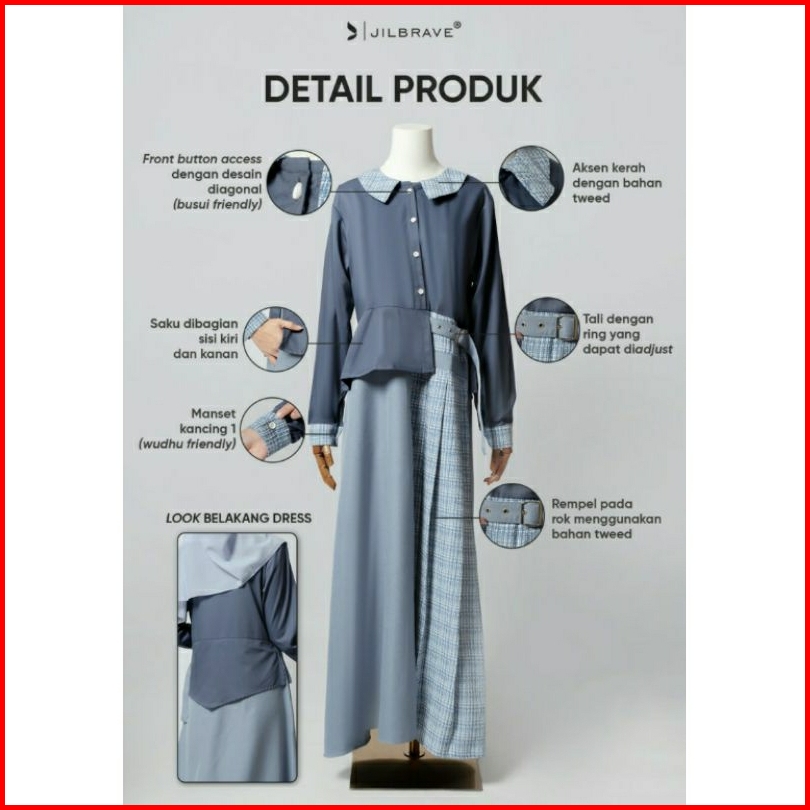 Amara Dress Jilbrave Gamis Preppy Casual Model Semiformal Bahan Katun Dan Semiwool