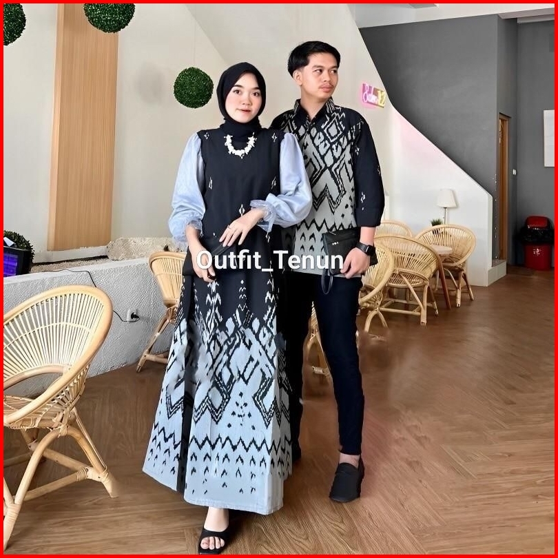 Ready Stock Set Couple Rubby Dress Pakaian Perempuan Tenun Baju Pria Wanita Kondangan Prewedding Guru Kartinian