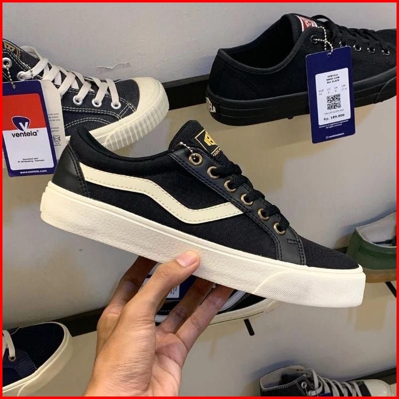 Discount Sepatu Ventela Republik Low Black Sneaker Canvas Casual Pria Shoes