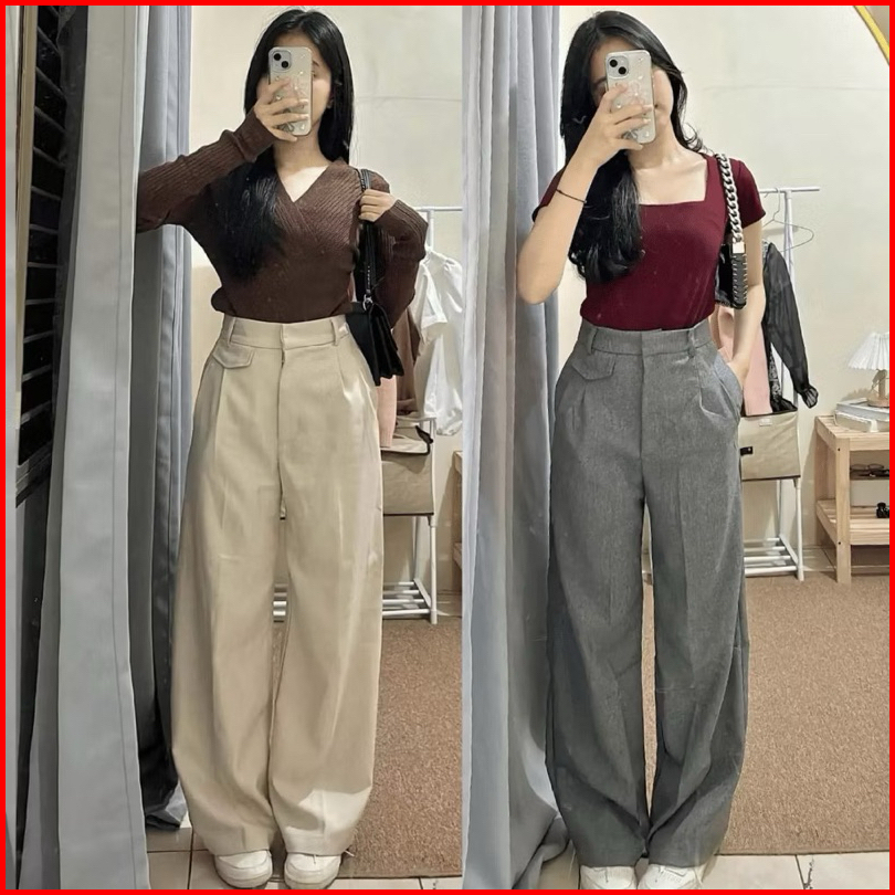 Celana Kulot Wanita Bahan Semiwool Celana Panjang Highwaist Kekinian Anti Kusut