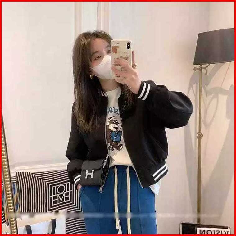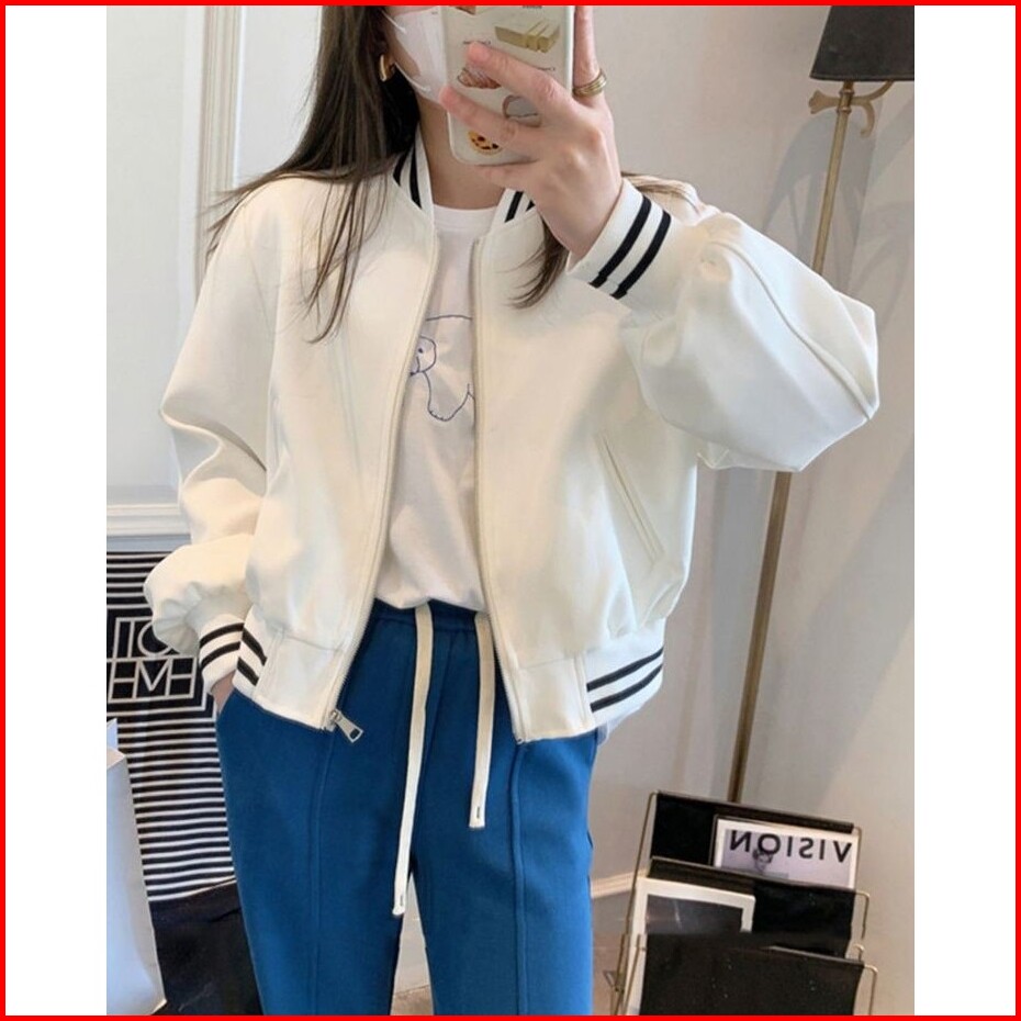 Cemprus.id Simple Jacket Crop Polos Wanita Varsity Korean Style - Jacket Basebal Crop Wanita Simple