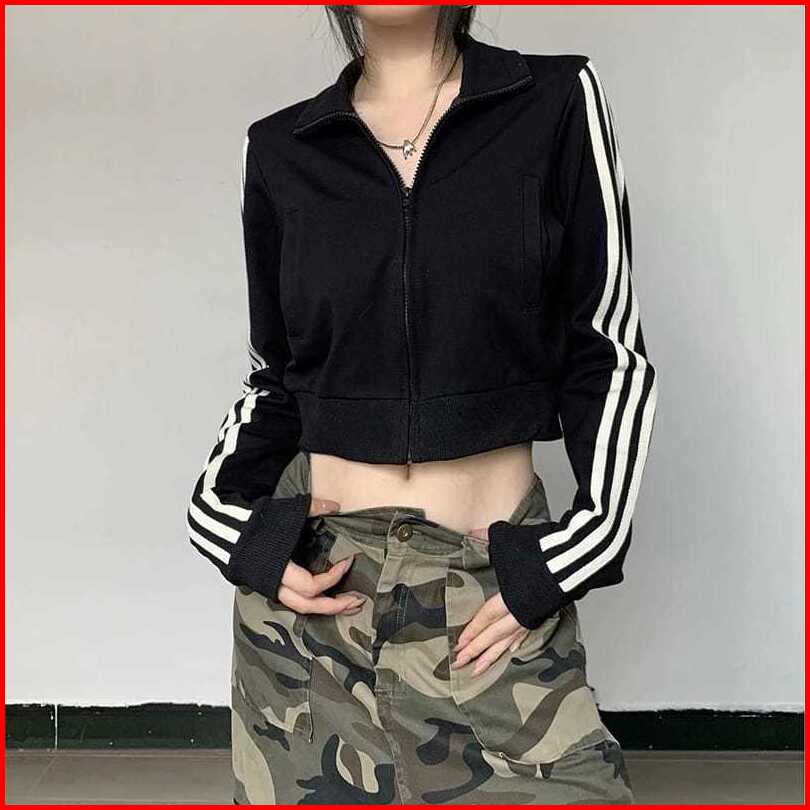 Stand Collar Jaket Vintage Crop Wanita - Jaket Crooped Wanita Korean Style
