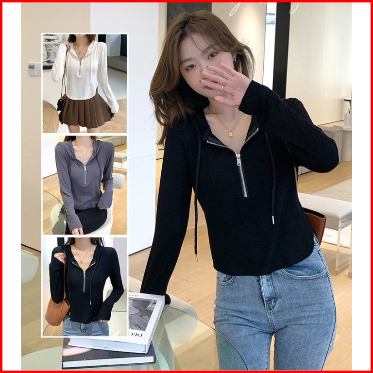 Sweater Hoodie Wanita Lengan Panjang Zipper Jaket Polos Korean Cewek Fashion Terkini Bahan Premium Simple Jumper Basic F