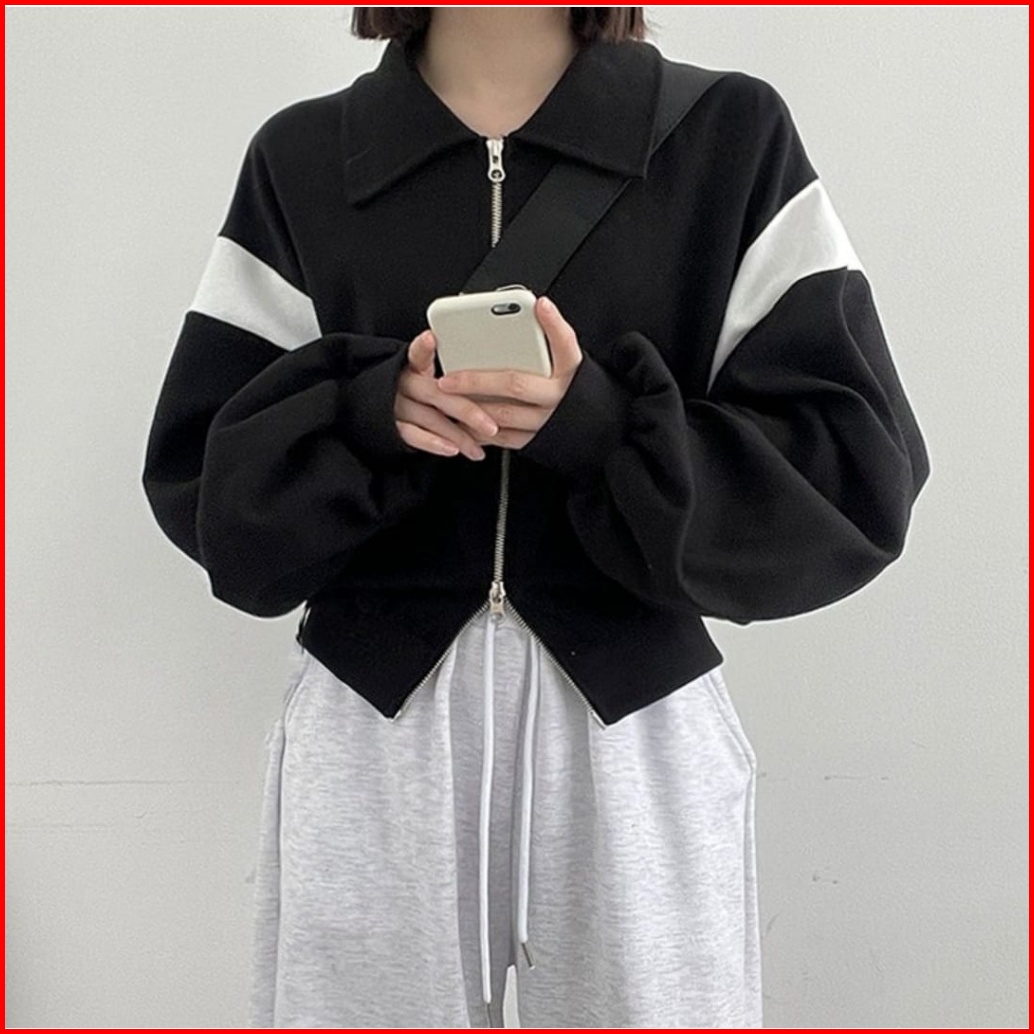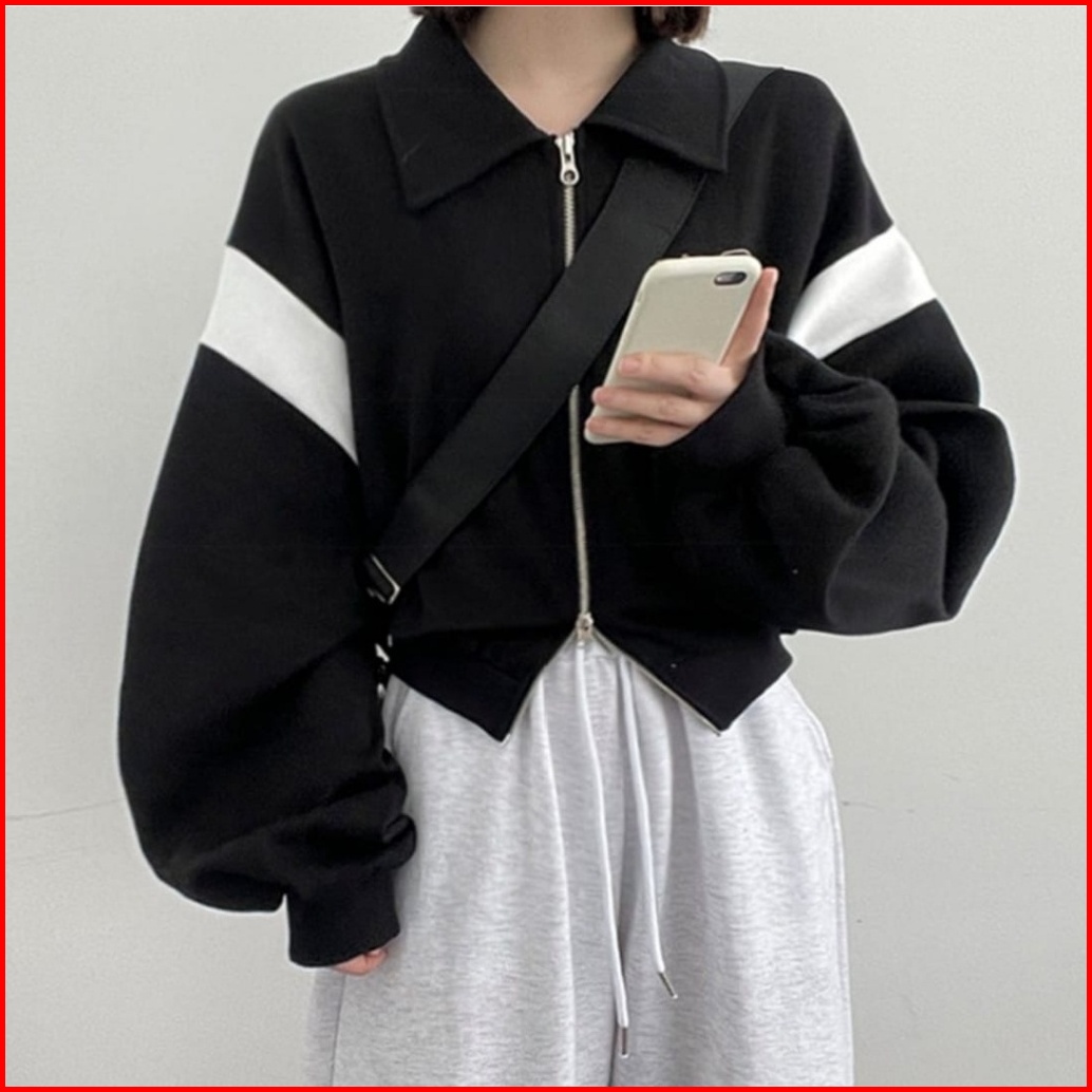 Jaket Wanita Vidi Collar Crope Jaket Korean Style - Jaket Croope Wanita - Crop Top