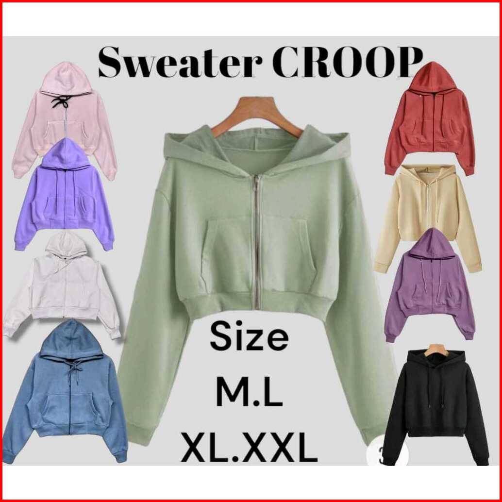 Aasaaj4k3t Zipper Crop Basic Polos Stuff Original Wanita Sweater Wanita Oversize Crop Zip Basic Jaket Resleting Flecee W