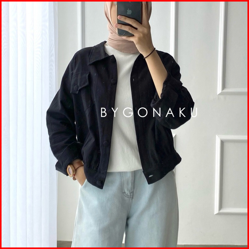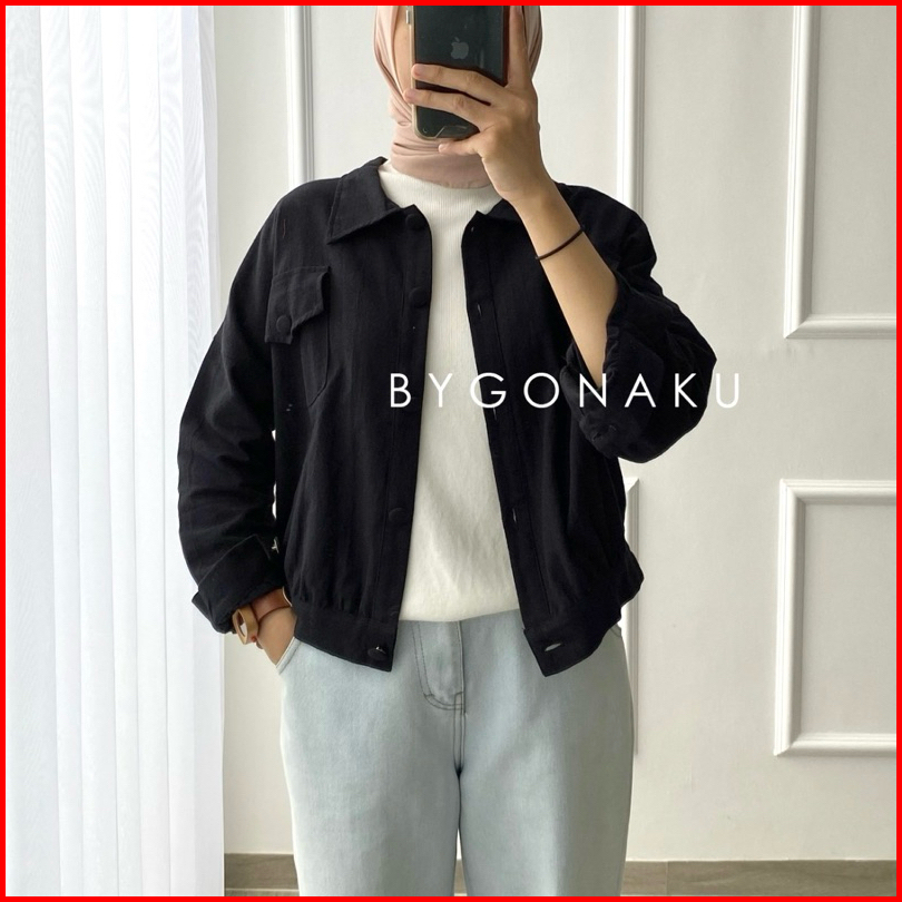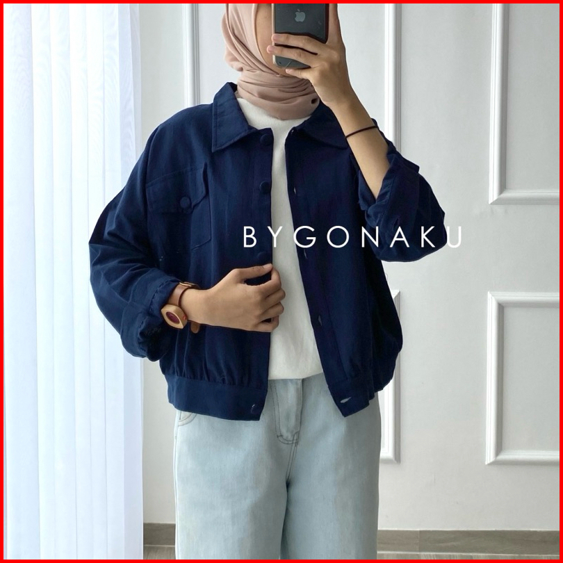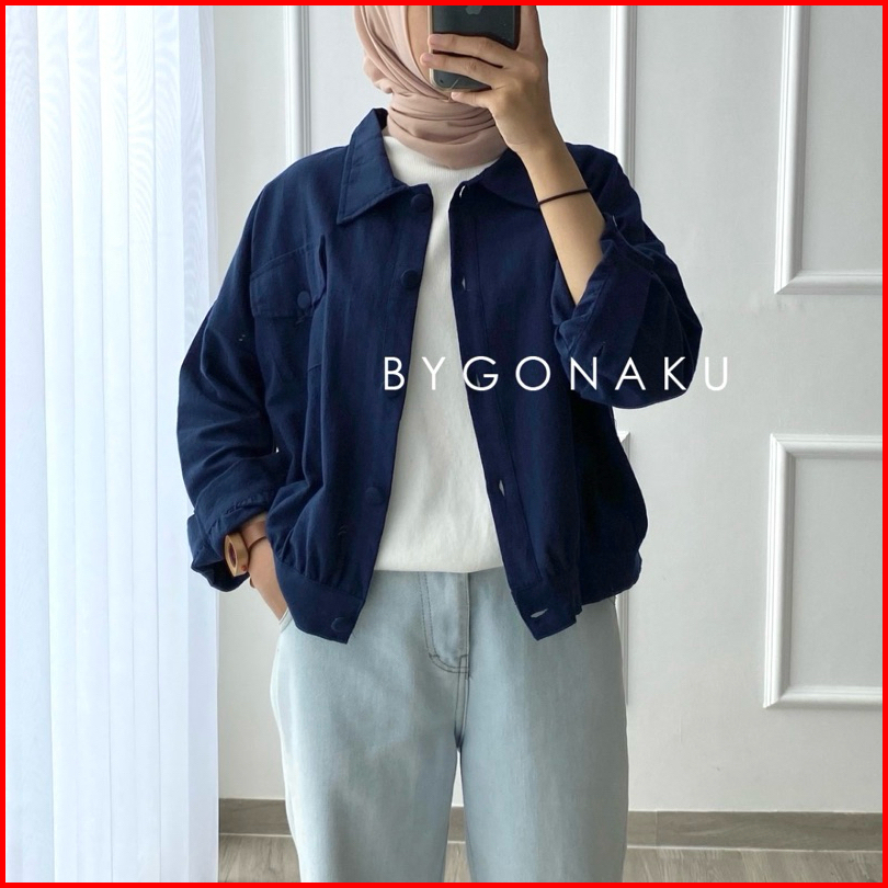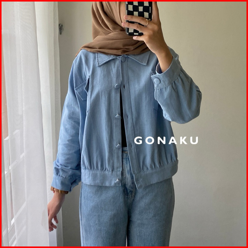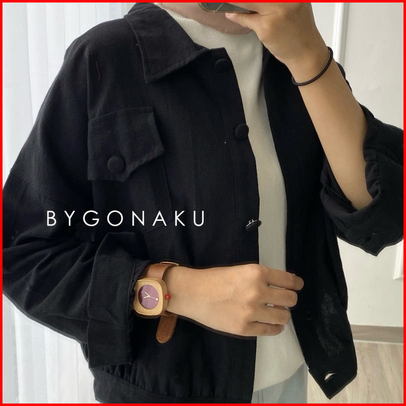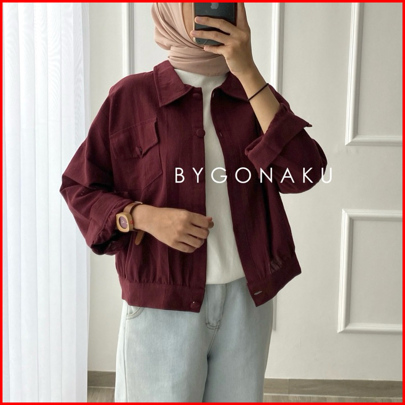 Gonaku Nara Oversized Jaket Linen Wanita Outer Bigsize Wanita Jaket Wanita Jaket Lengan Balon Atasan Wanita