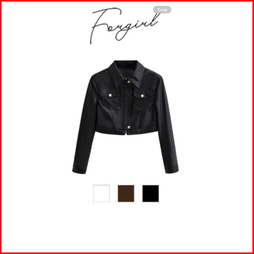 Dzakileather- Jaket Crop Wanita Saku Kancing Depan Tidak Berban Bawah