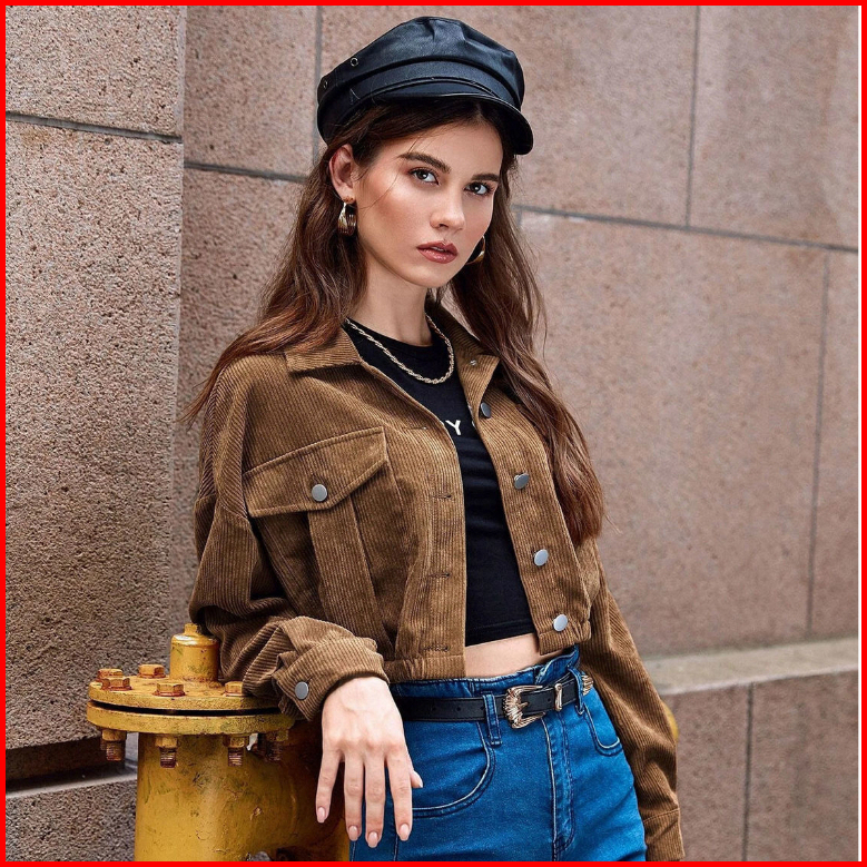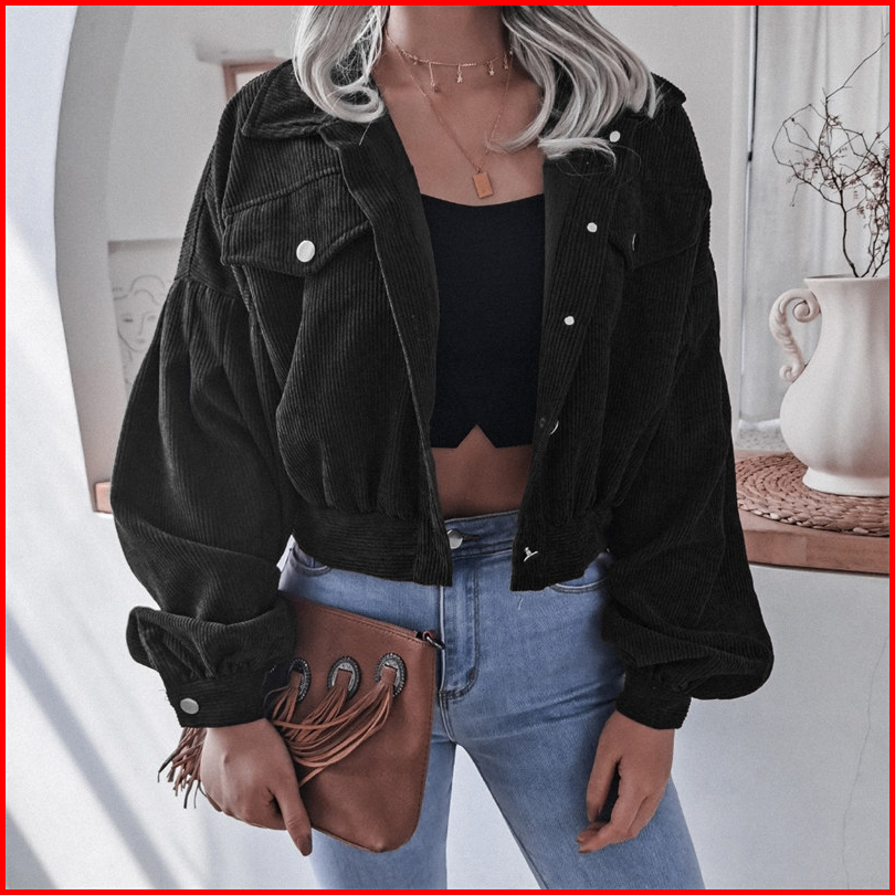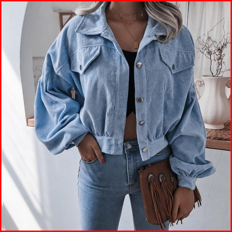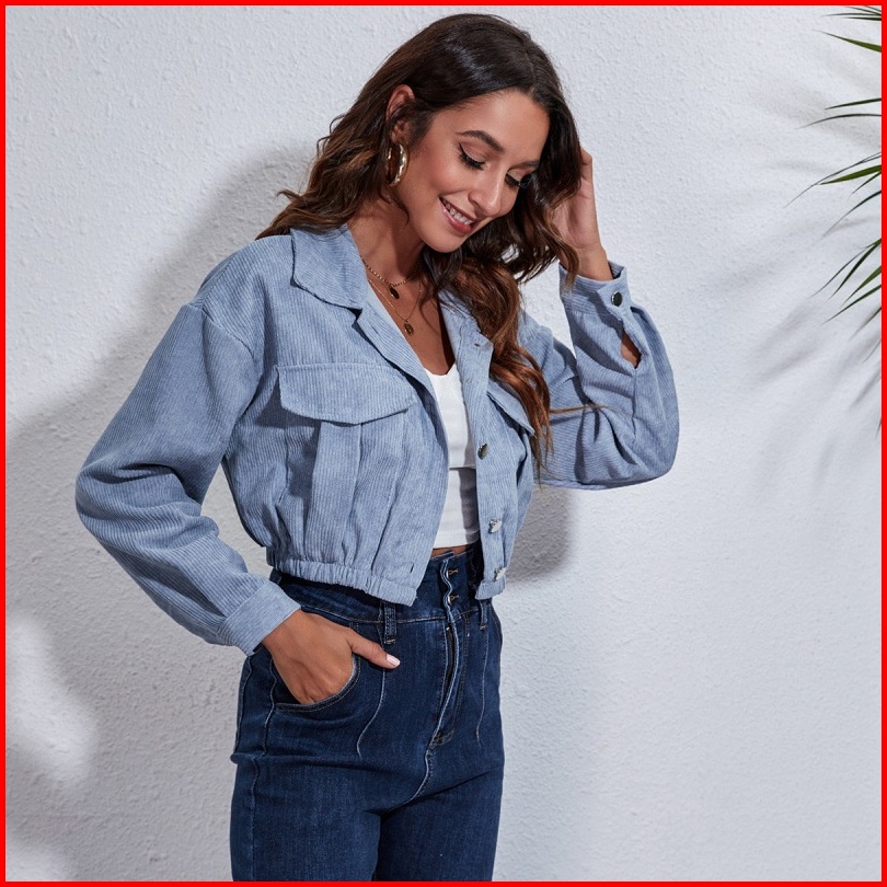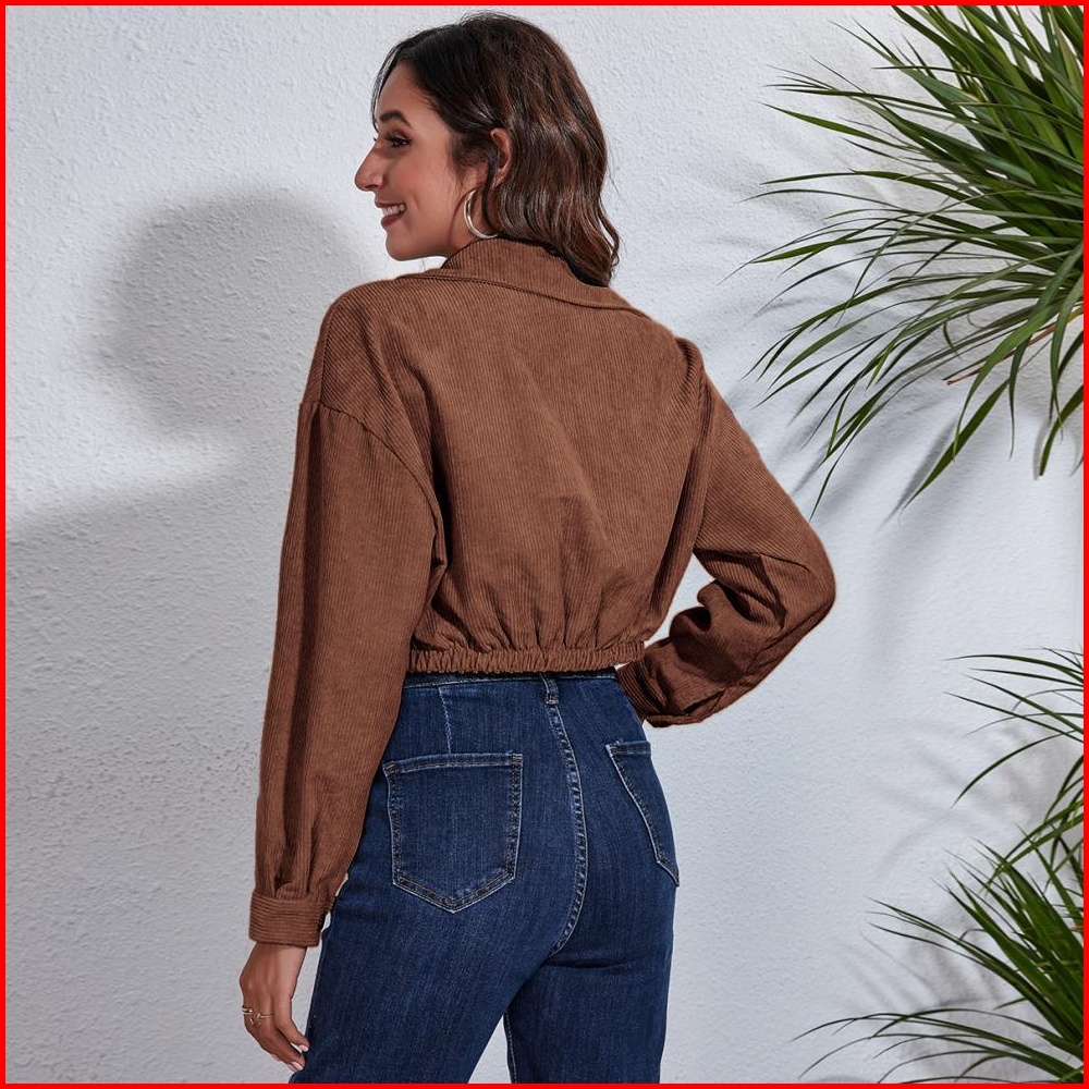 Yuruma Korean Women S Long Sleeves Top Corduroy Cropped Jacket