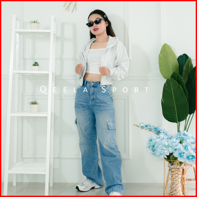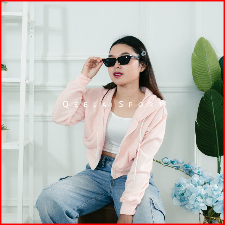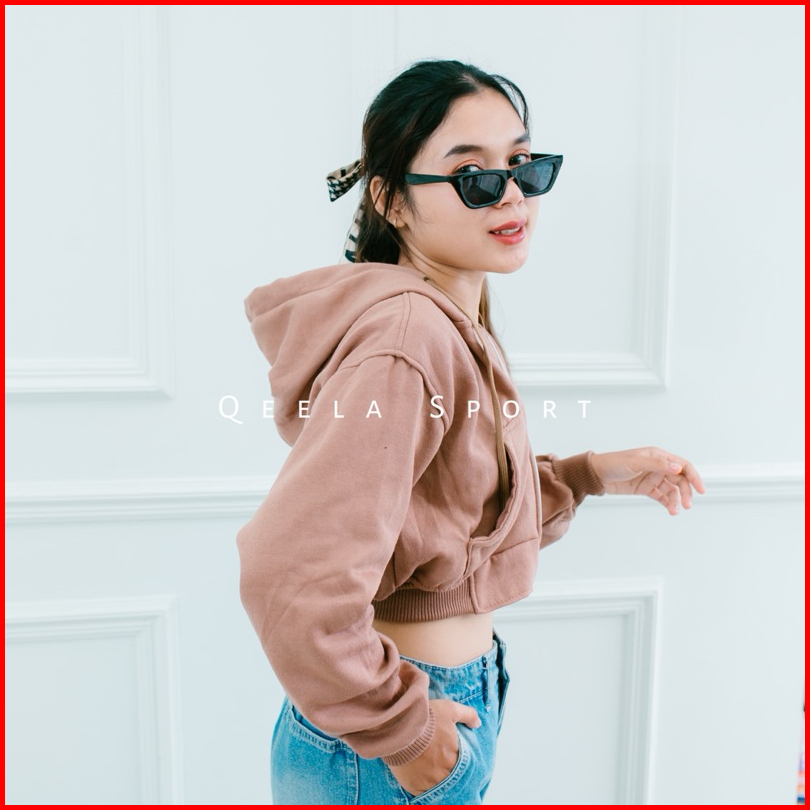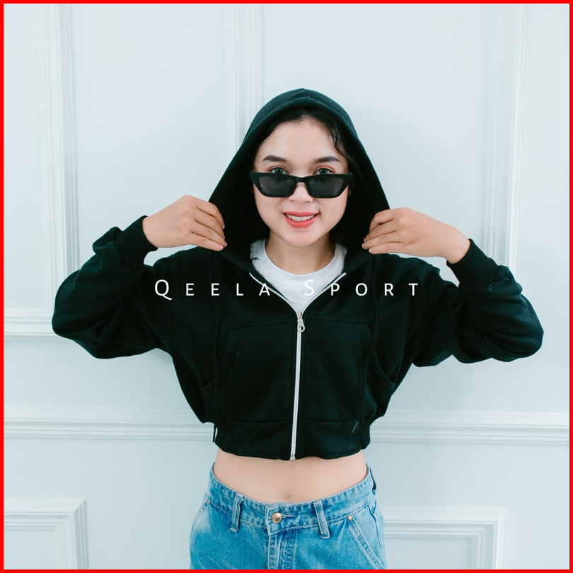 Qeelaofficial Hoodie Zipper Crop Jacket Sweater Creawneck Hoodie Wanita Jaket Wanita