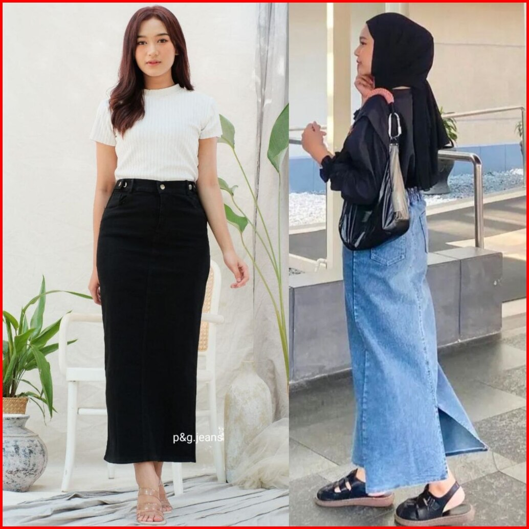Blue Treads - Rok Span Trend Korean Style Street Theana Rok Jeans Skirt Panjang
