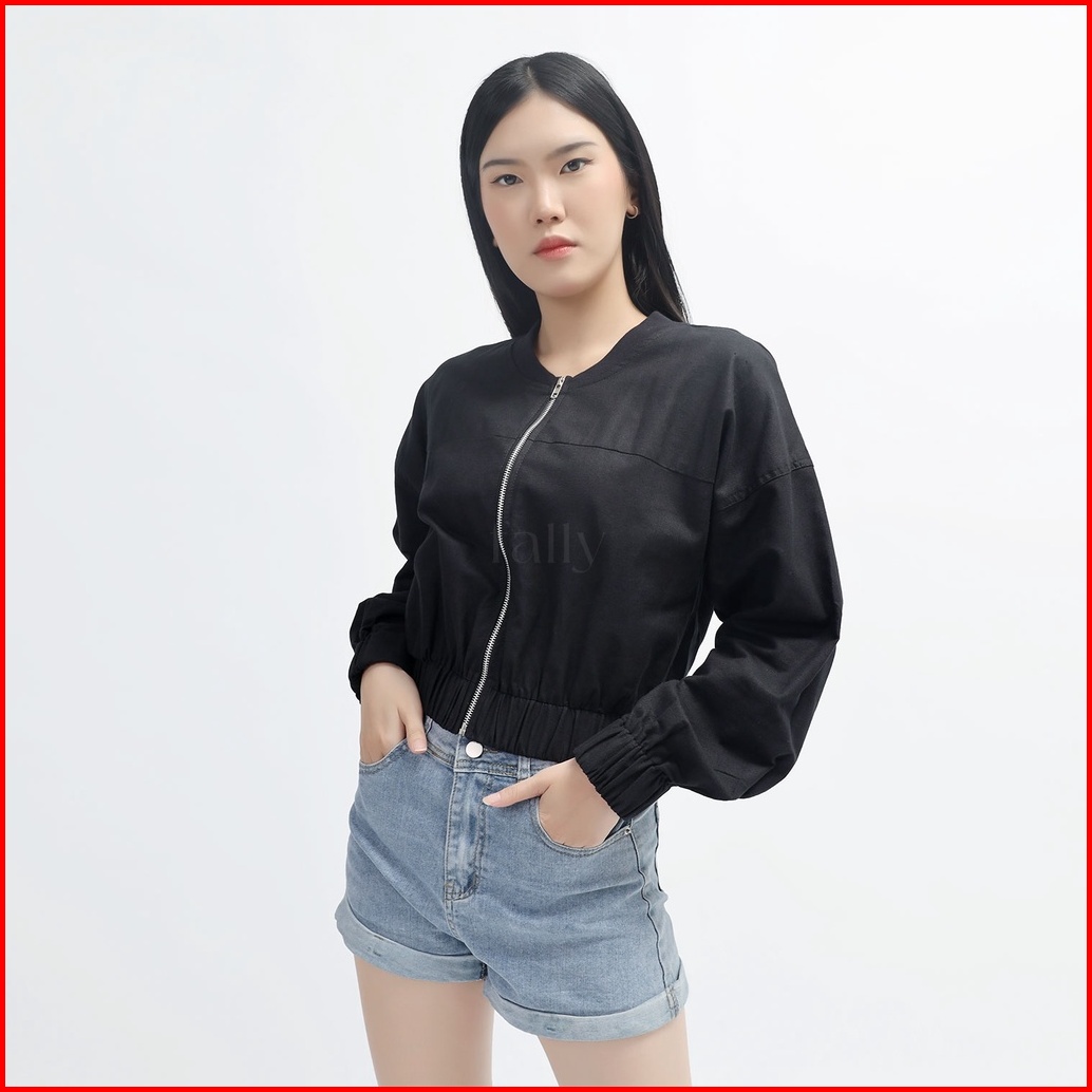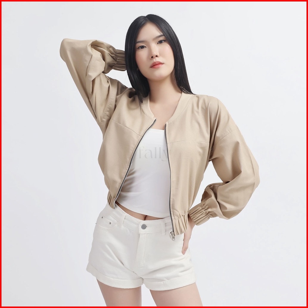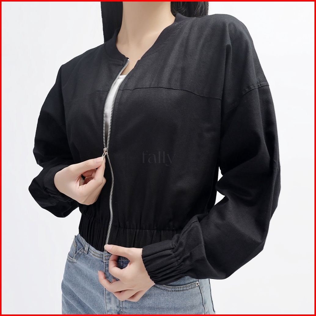 Fally Jovanka Cropped Bomber Jaket Crop Zip Up Jaket Zipper Wanita