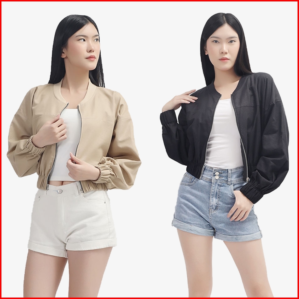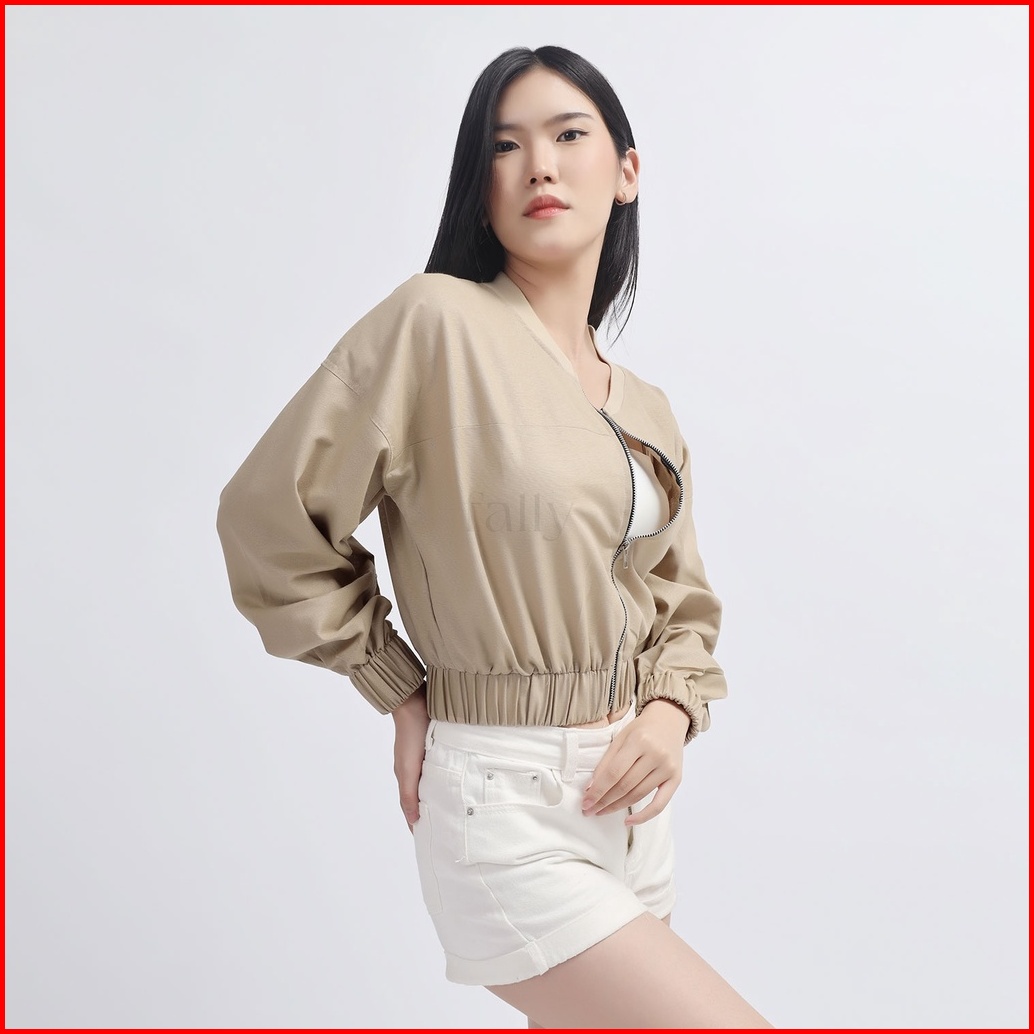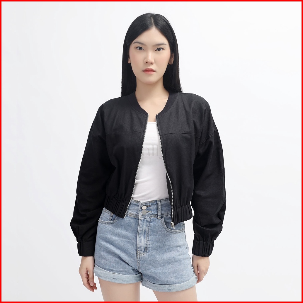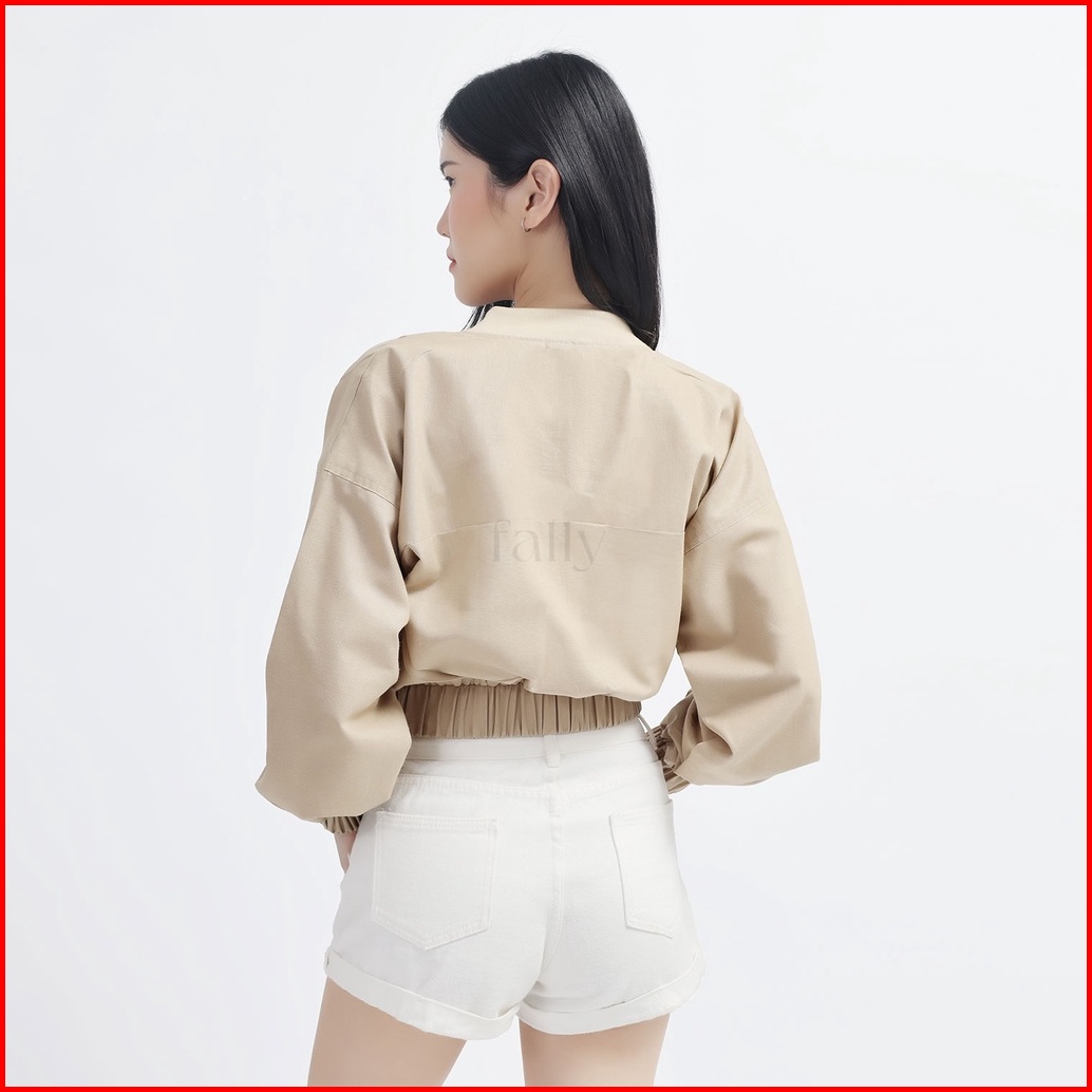 Fally Jovanka Cropped Bomber Jaket Crop Zip Up Jaket Zipper Wanita