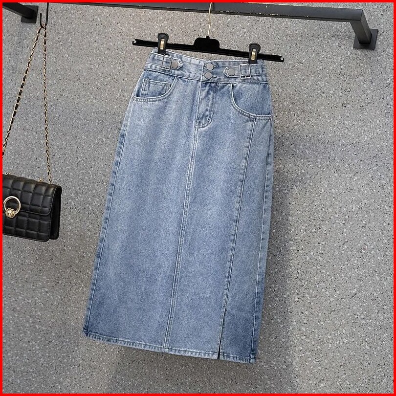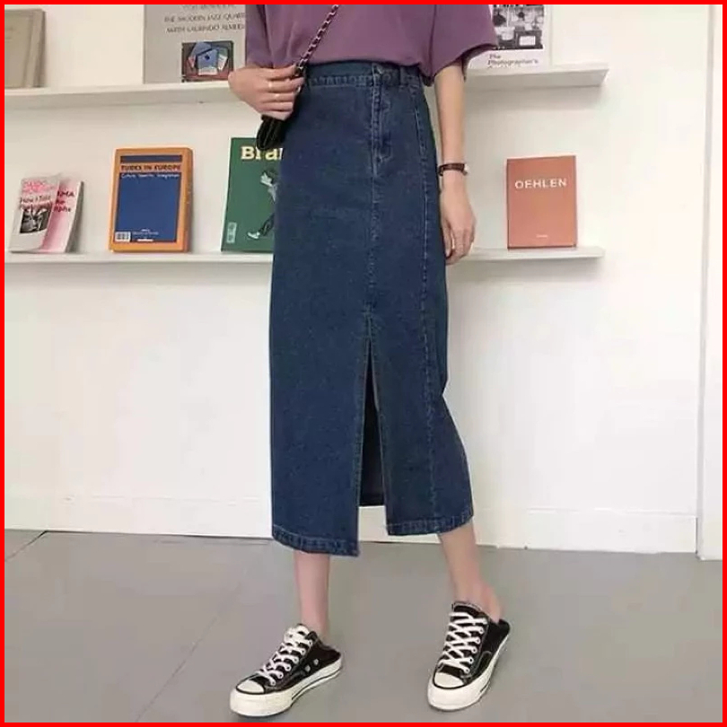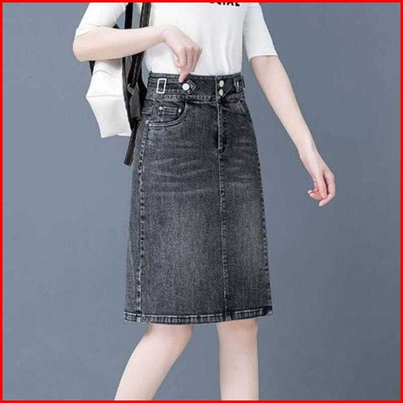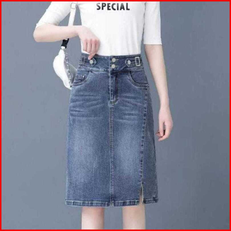 Rok Jeans Stretch Pendek 7 8 Belah Samping - Rok Jeans Wanita Kekinian Azimah Style