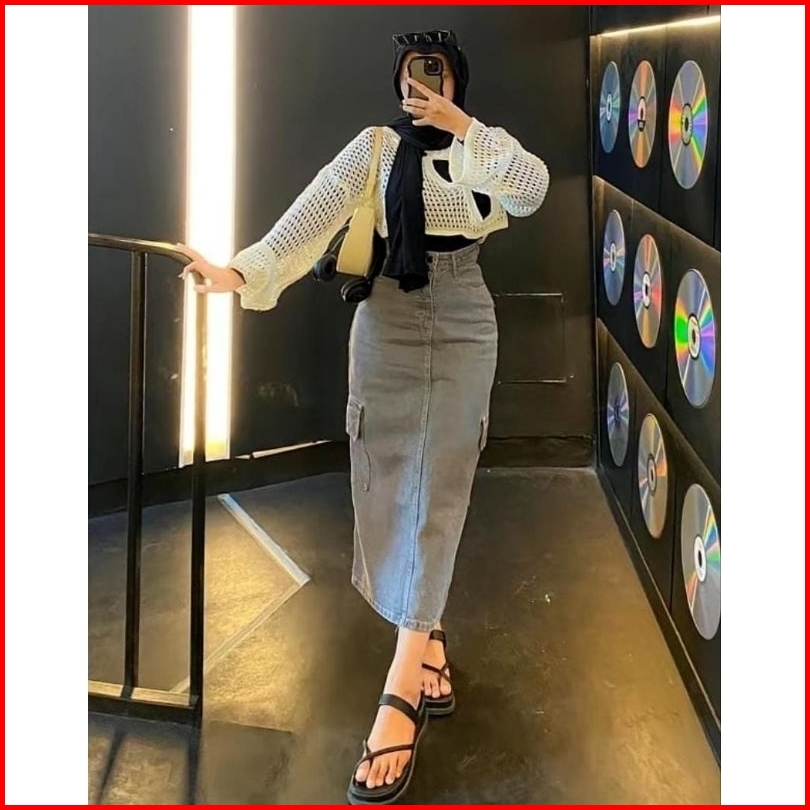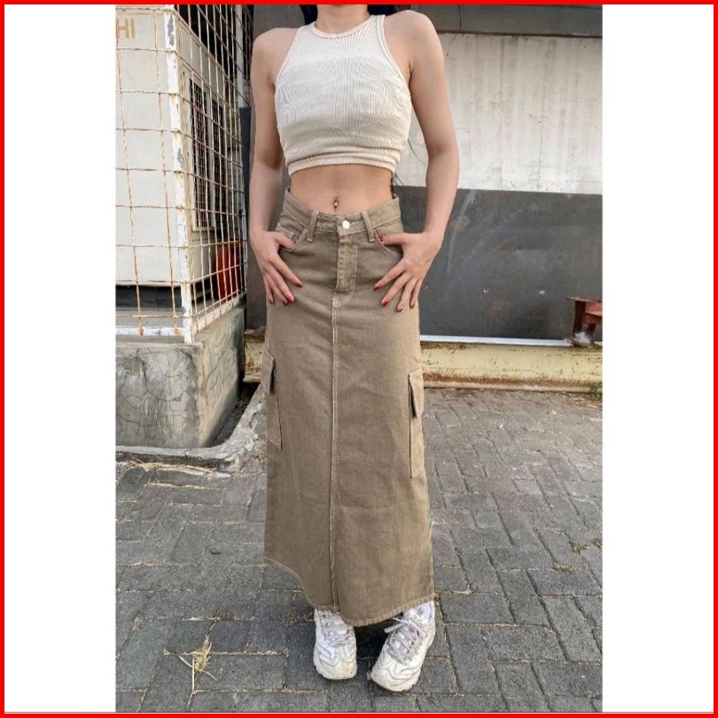 Rok Cargo Jeans Korean Style - Rok Cargo Jeans Wanita Vol2