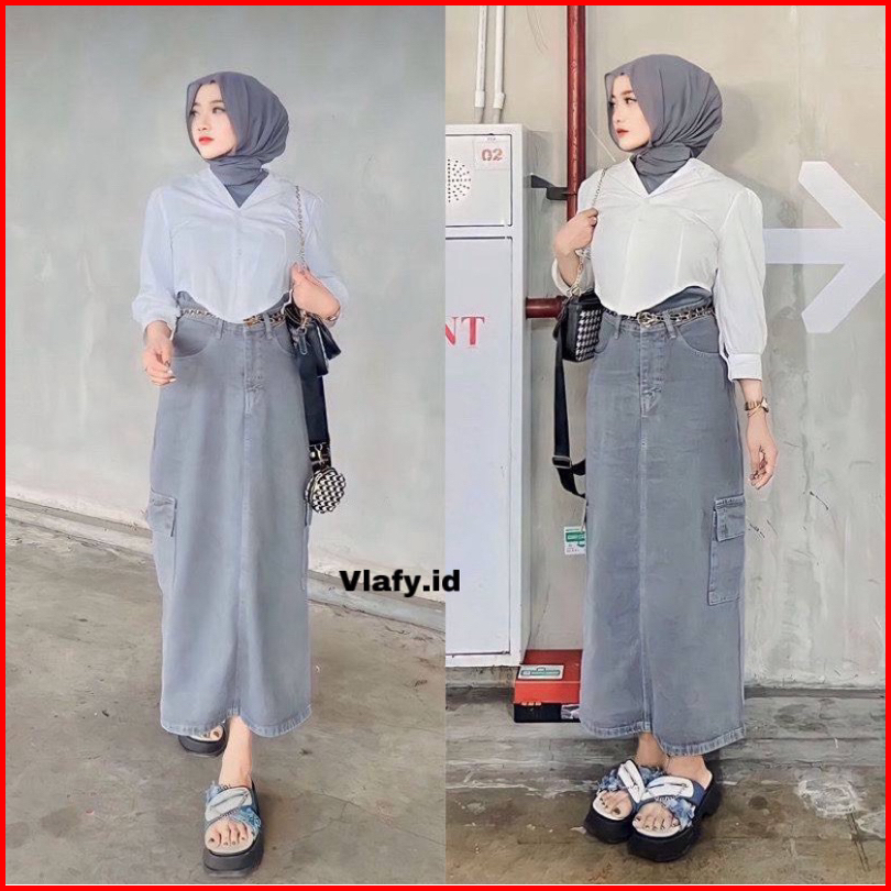 Rok Cargo Jeans Highwaist Premium Rok Cargo Jeans Wanita Rok Kargo Jeans Kekinian
