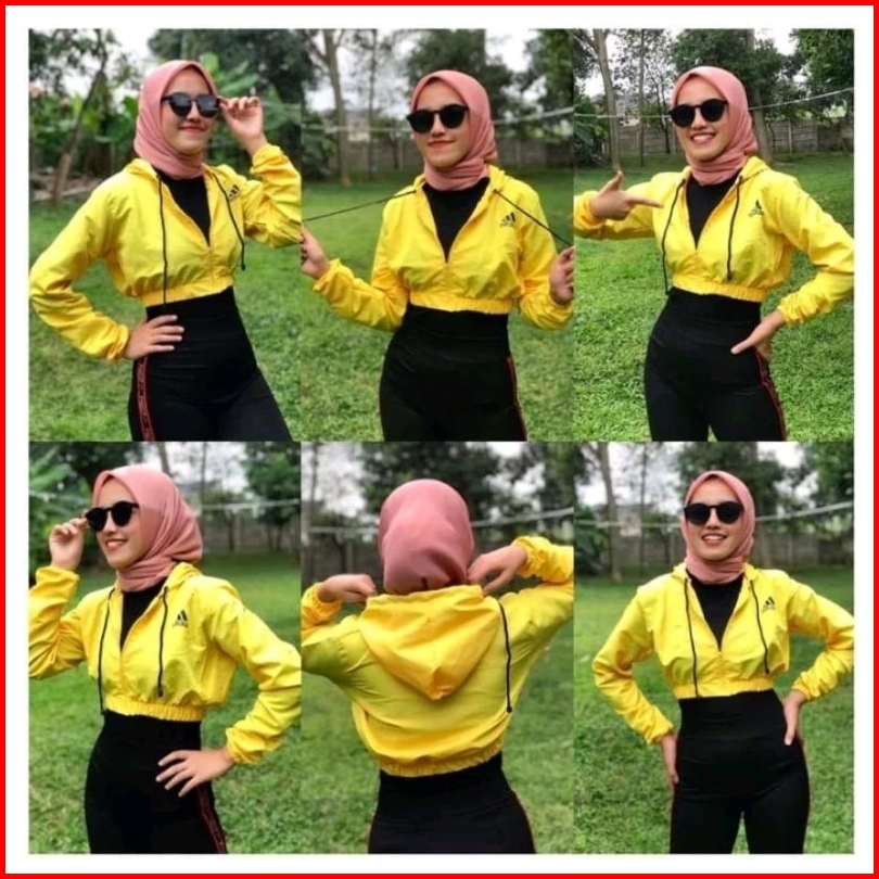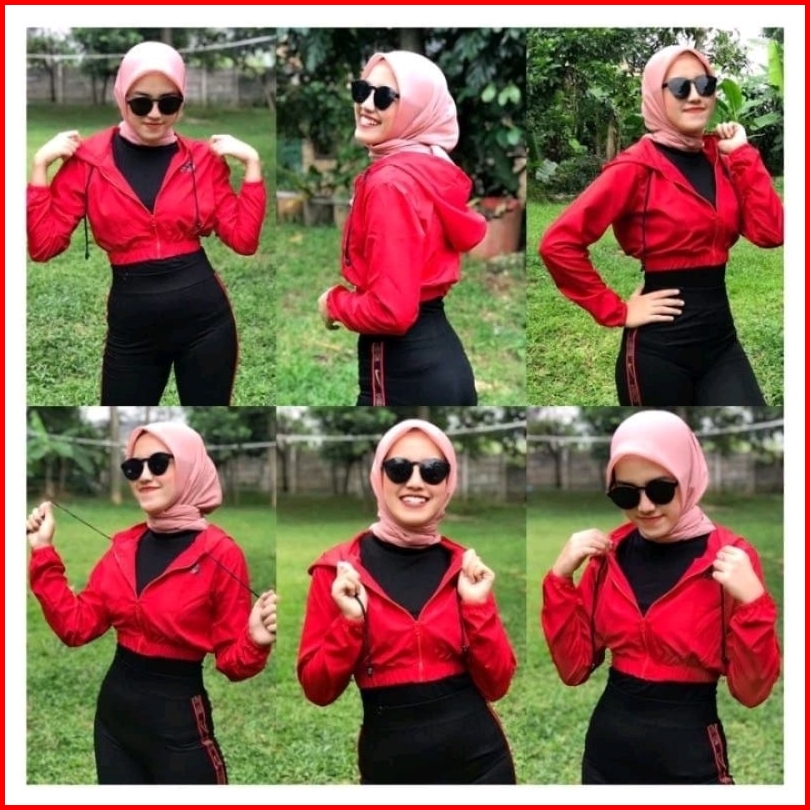 Jaket Crop Top Parasut Olahraga Wanita Jaket Gym Zumba Sauna Suit Waterproof Pelindung Uv