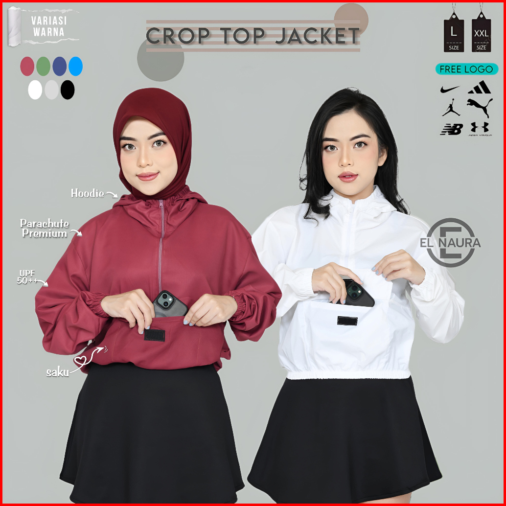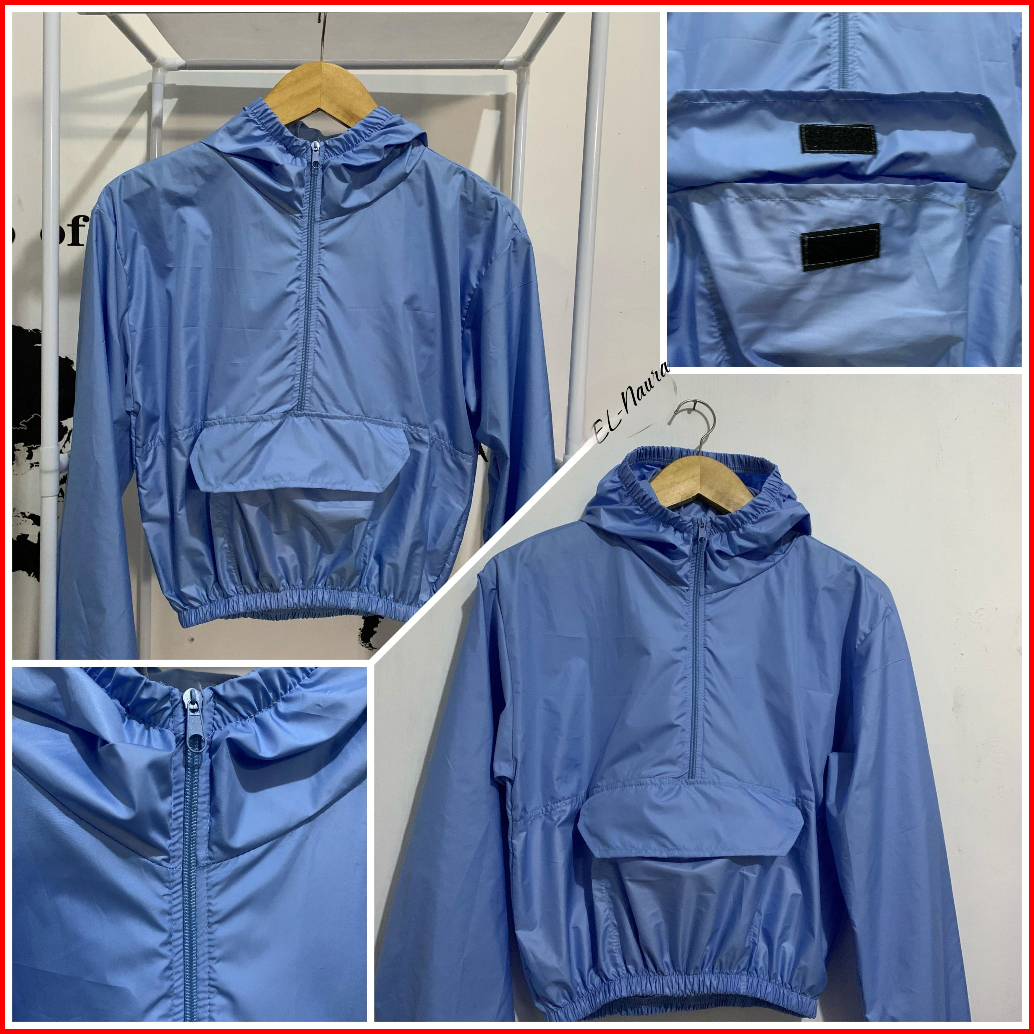 Jaket Crop Top Saku Olahraga Wanita Parasut Anti Uv Waterproof Senam Joging Lari Running Yoga Dll