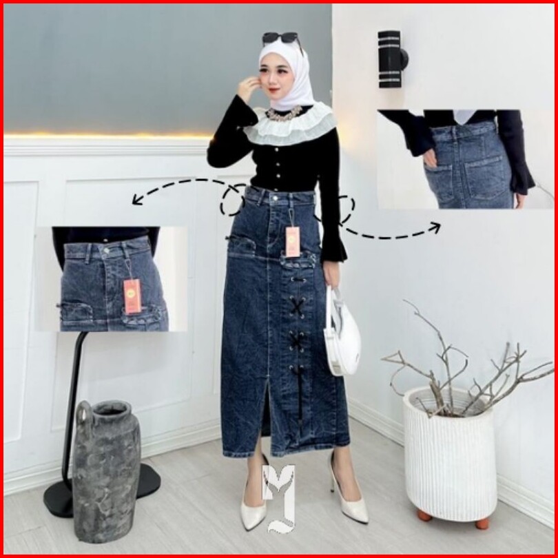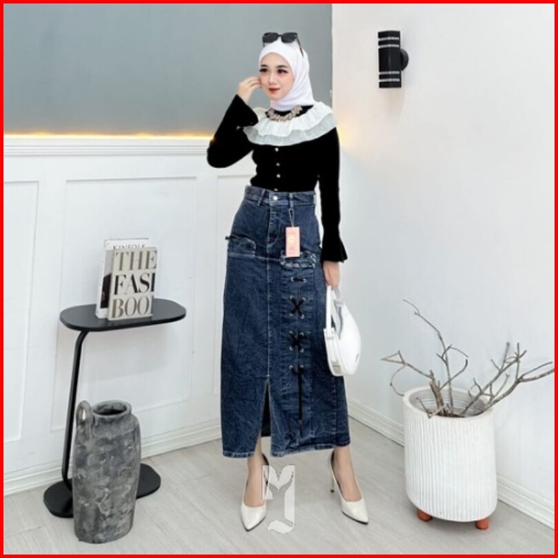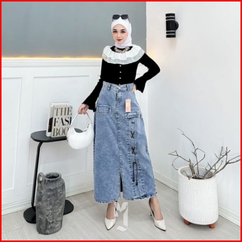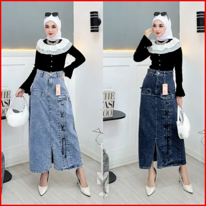 Rok Jeans Highwaist Duma Skirt Jeans - Rok Tali Panjang Korean Style
